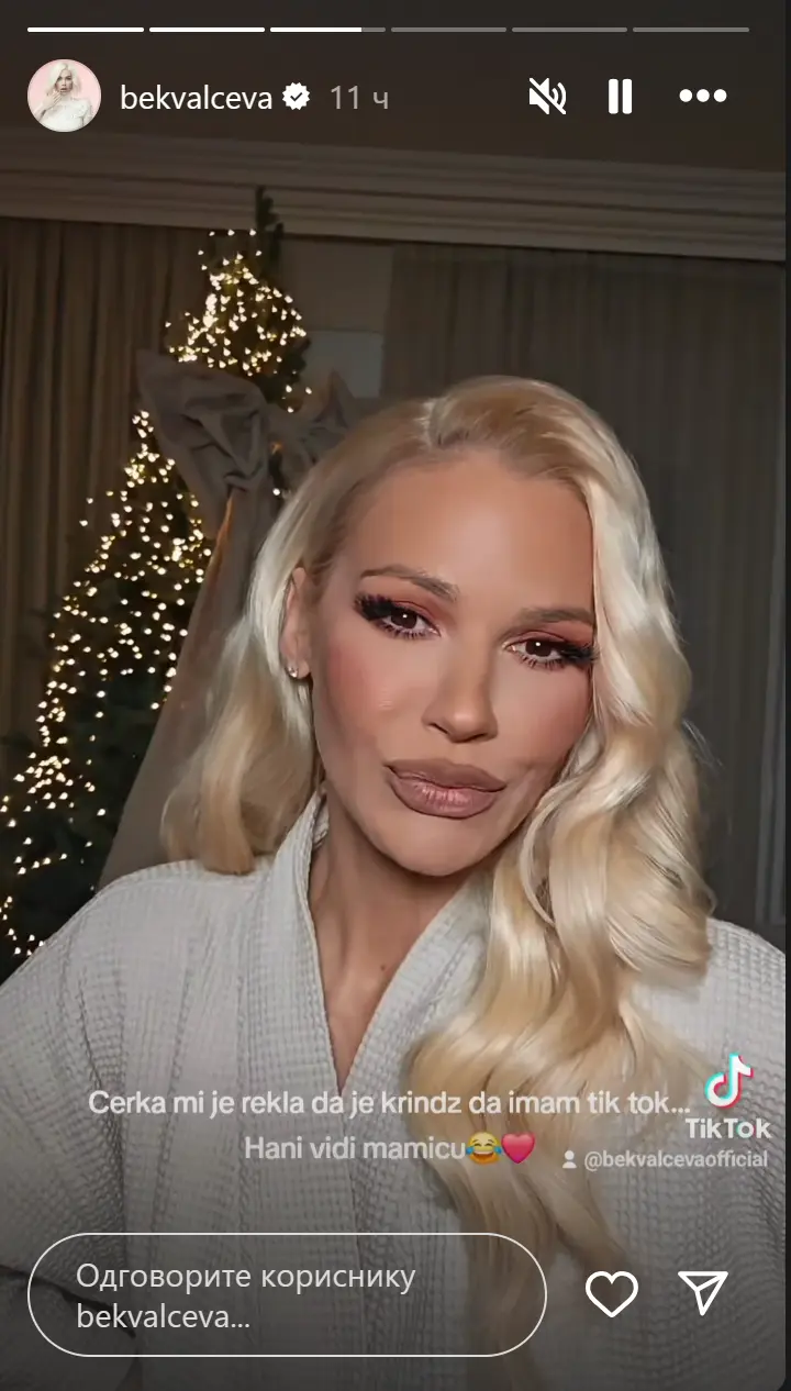 Neodoljiva novosadska plavuša, Nataša Bekvalac izabrala je jelku do plafona na kojoj su se našle samo svetlucave lampice u jednoj boji, dok se duž celog drveta prostirala gigantska mašna u puder roze nijansi - jednostavno i efektno.