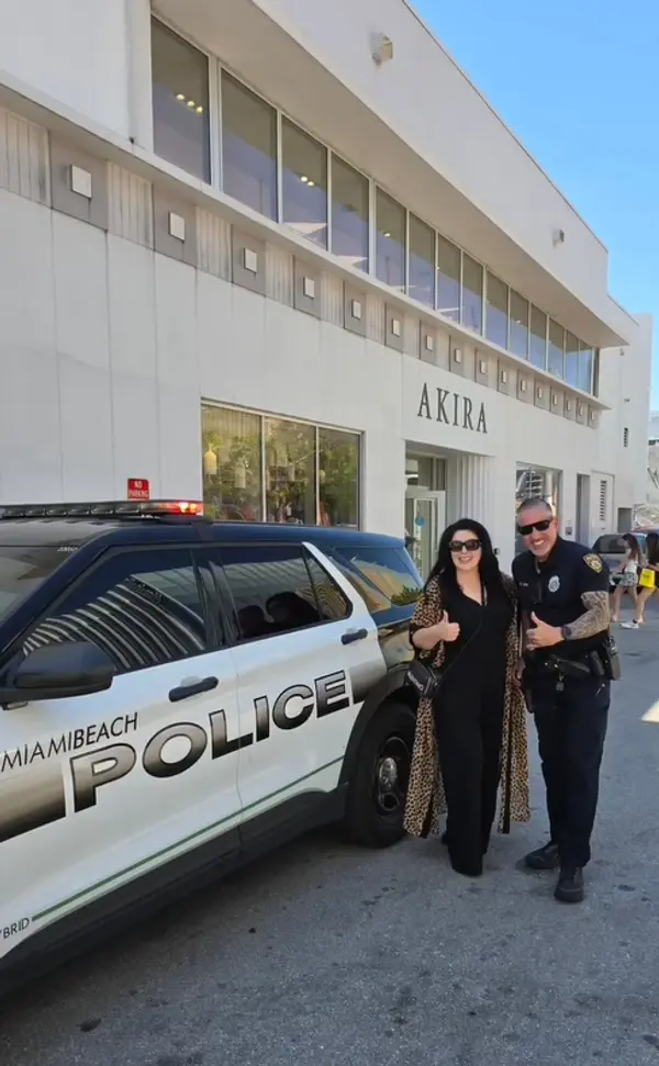 Dragana je pokazala i kako pozira u zagrljaju jednog policajca u Majamiju, a osmehe nisu skidali.