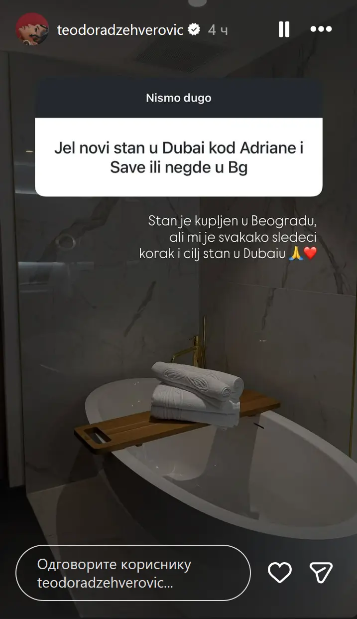 "Stan je kupljen u Beogradu, ali mi je svakako sledeći korak i cilj stan u Dubaiju", napisala je pevačica.