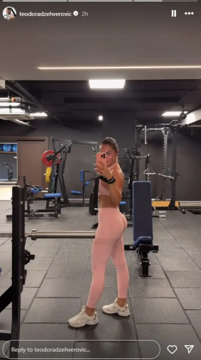 U kratkom videu, Teodora je zadihana i oznojena, ali i ponosna na svoje telo – ističući zategnutu zadnjicu, pločice na stomaku i figuru na kojoj bi joj mnogi pozavideli.