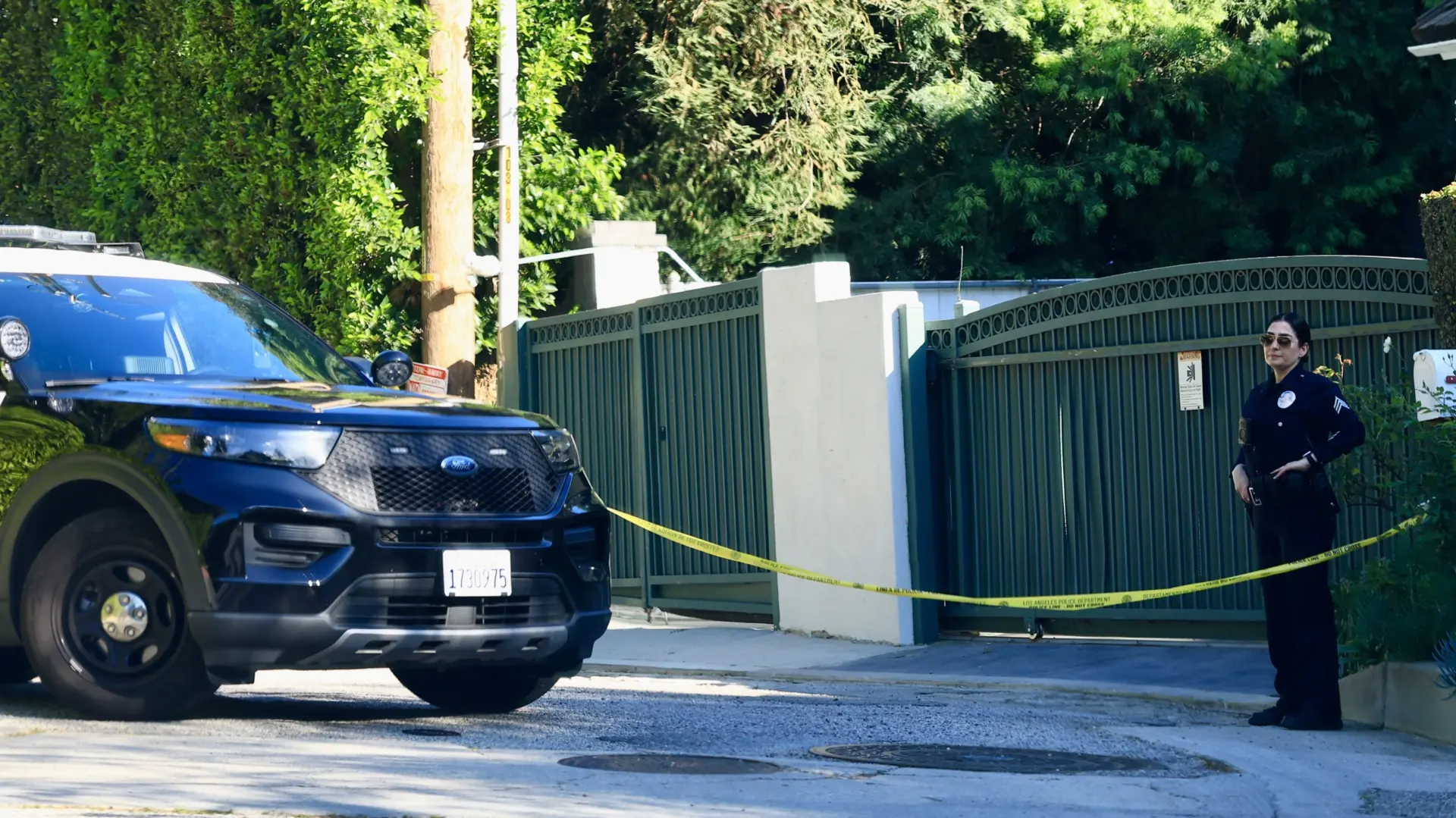 Fotografije sa mesta događaja prikazuju policijsku traku postavljenu ispred luksuzne nekretnine, dok su pripadnici policije Los Angeles Police Department obezbedili šire područje oko kuće.