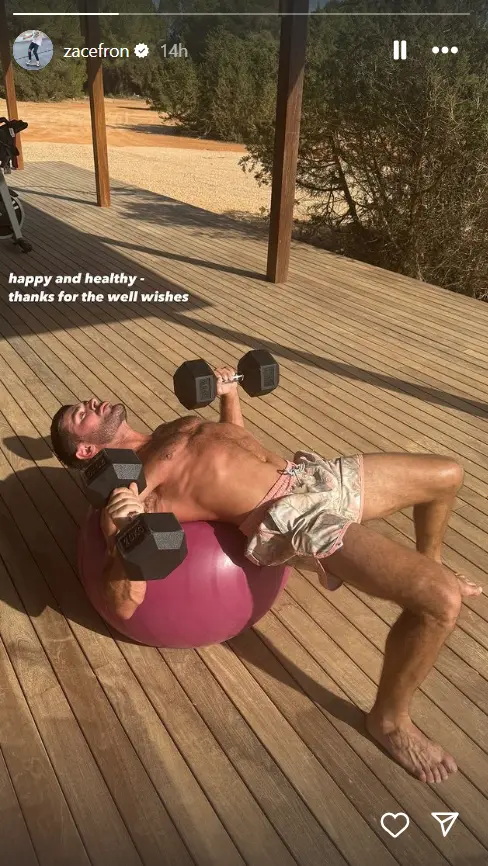 Foto: Chris Pizzello, TanjugZak Efron objavio je fotografiju na kojoj se vidi kako vežba i poručio je da se oseća "srećno i zdravo".