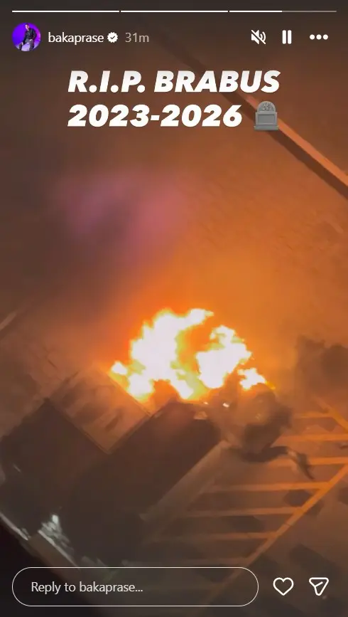 "R.I.P. Brabus 2023-2026", napisao je Baka Prase, a kadar vozila u plamenu možete pogledati u nastavku teksta.
