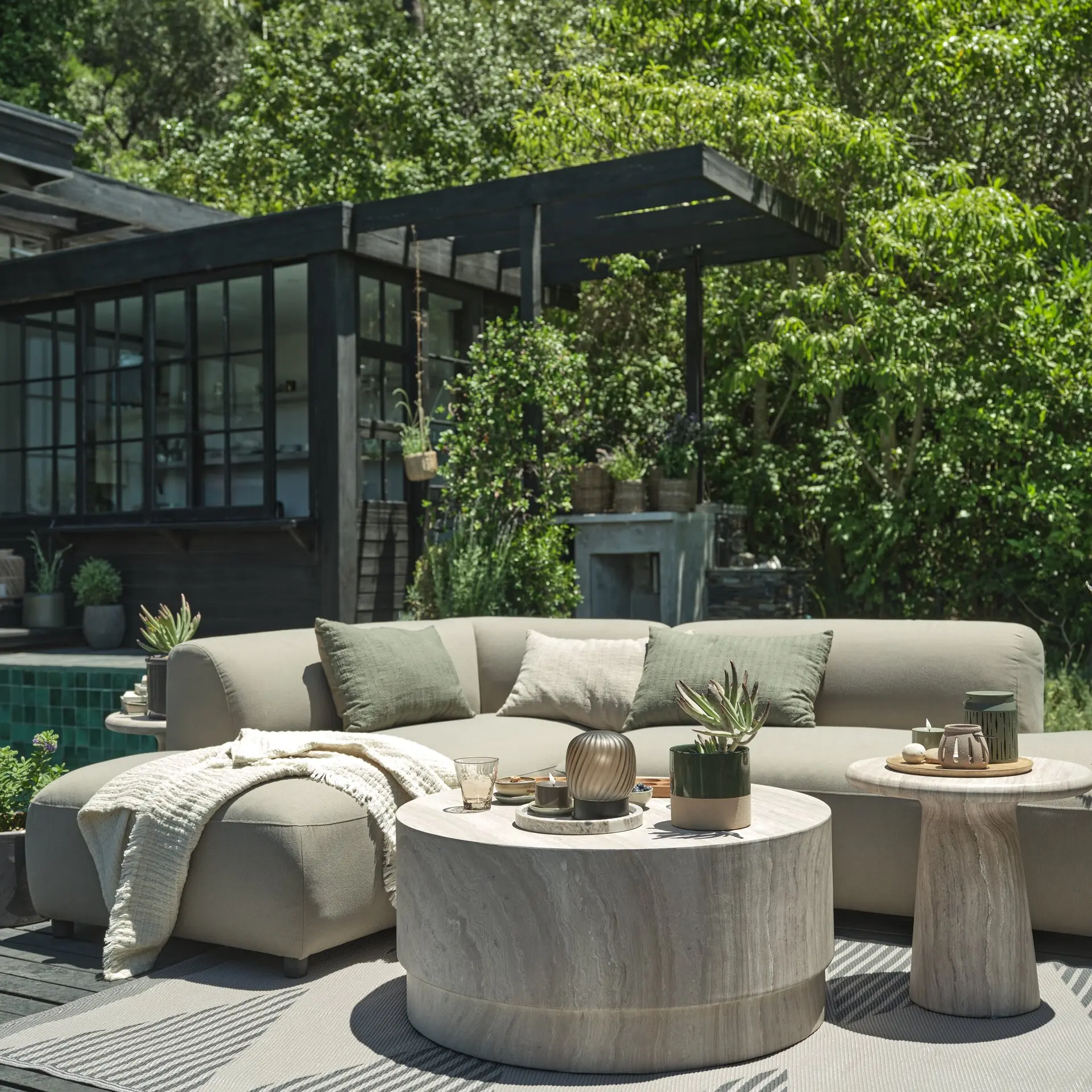 Zamislite dnevni boravak na otvorenom – uz tekstile i materijale koji izgledaju kao da pripadaju enterijeru, ali su dizajnirani da izdrže spoljašnje uslove.