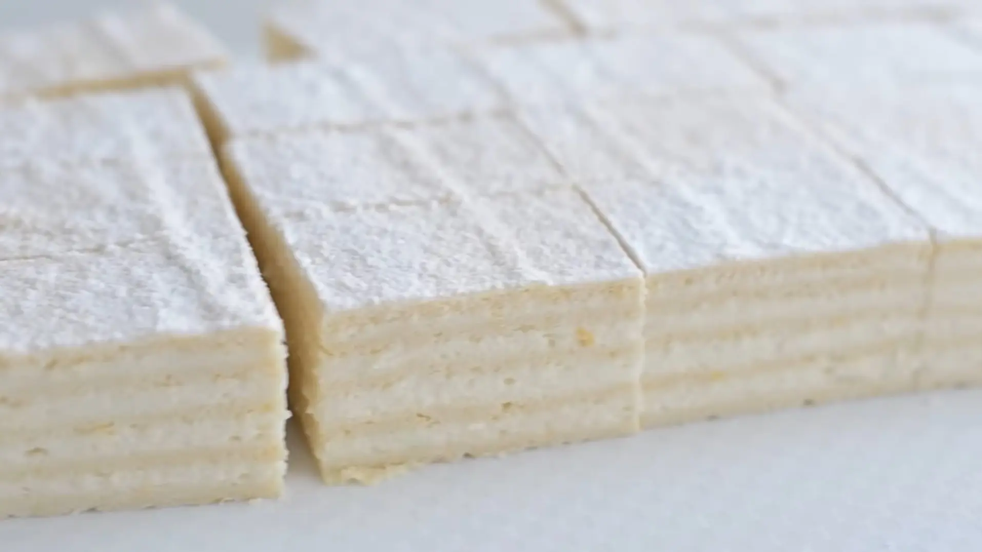 Rernu zagrejte na 175 stepeni. Pomešajte brašno sa praškom za pecivo. Onda dodajte mileram, jaja, šećer i omekšali margarin. Umesite glatko testo pa ga podelite na 5 jednakih delova. Oblikujte lopticu od svakog dela pa je pokrijte krpom. Razvucite svaku lopticu između dva pek papira. Zatim prebacite razvučenu koru sa papirom na pleh. Pecite koru 8 minuta, u rerni zagrejanoj na 175 stepeni. Ponovite isti postupak sa još 4 kore. U jednoj posudi pomešajte brašno, šećere, aromu vanile i 200 ml mleka. Ostatak mleka zagrejte do ključanja pa skinite sa vatri dodajte prethodnu smesu. Zatim vratite na šporet i kuvajte sve dok se ne zgusne. Pokrijte fil prozirnom folijom pa pustite da se ohladi. Potom ga umutite sa margarinom, rendanom limunovom koricom i malo limunovog soka. Ređajte pitu redosledom kora-fil-kora-fil-kora-fil-kora-cela pita. Pospite poslasticu šećerom u prahu ili kokosom.
