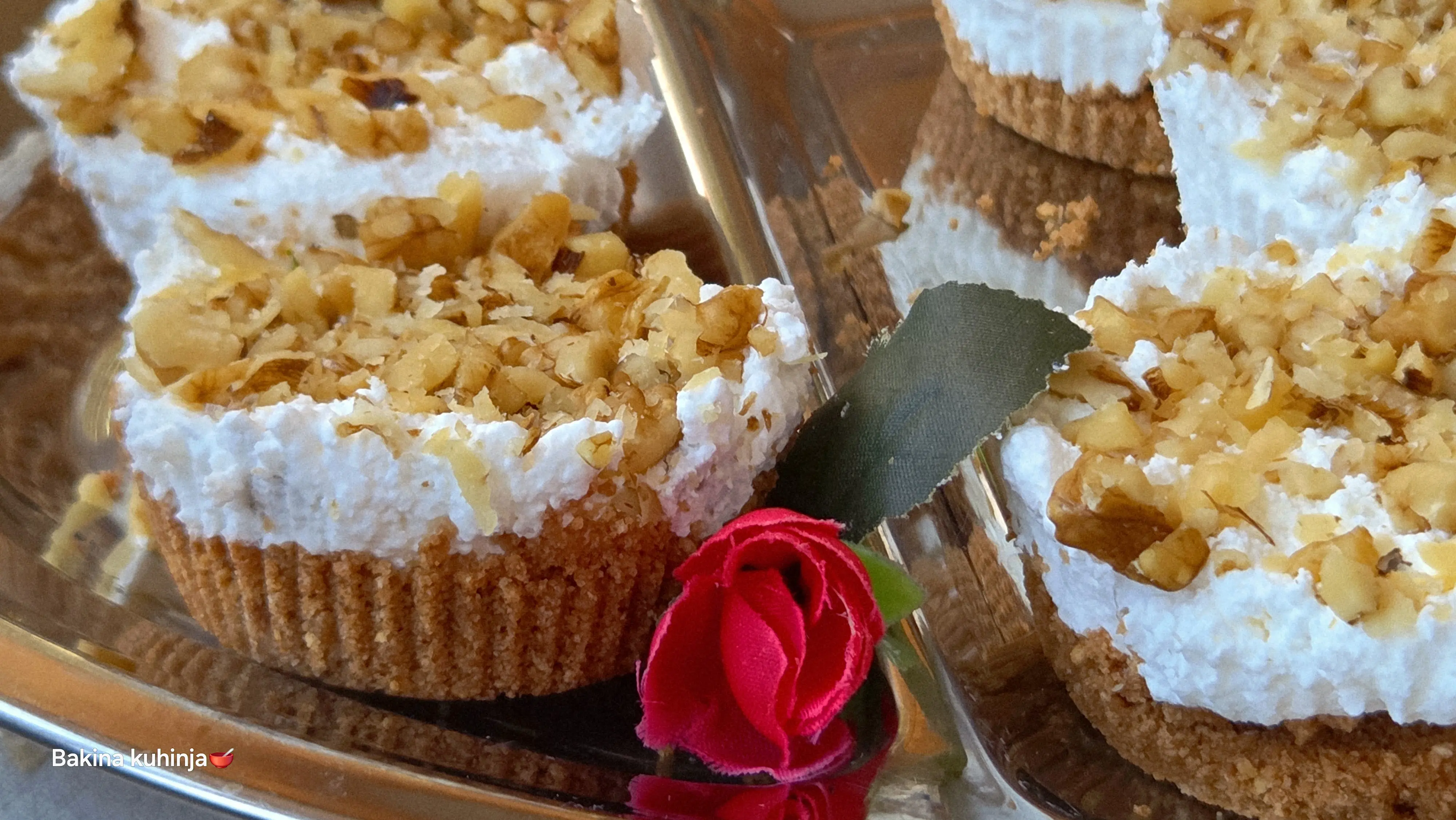 Sipajte fil preko keksa, pospite sa još malo oraha i ostavite pola sata u zamrzivaču ili sat vremena u frižideru. Nakon toga, desert je spreman za služenje.