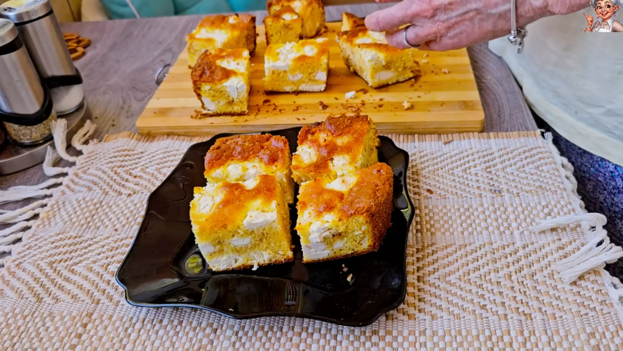 Umututu jaja mikserom, pa dodati hlebno brašno sa praškom za pecivo prosejano. Dodati kukuruzno brašno, ulje, jogurt i izmrvljen sir. Sve lagano izmešati.