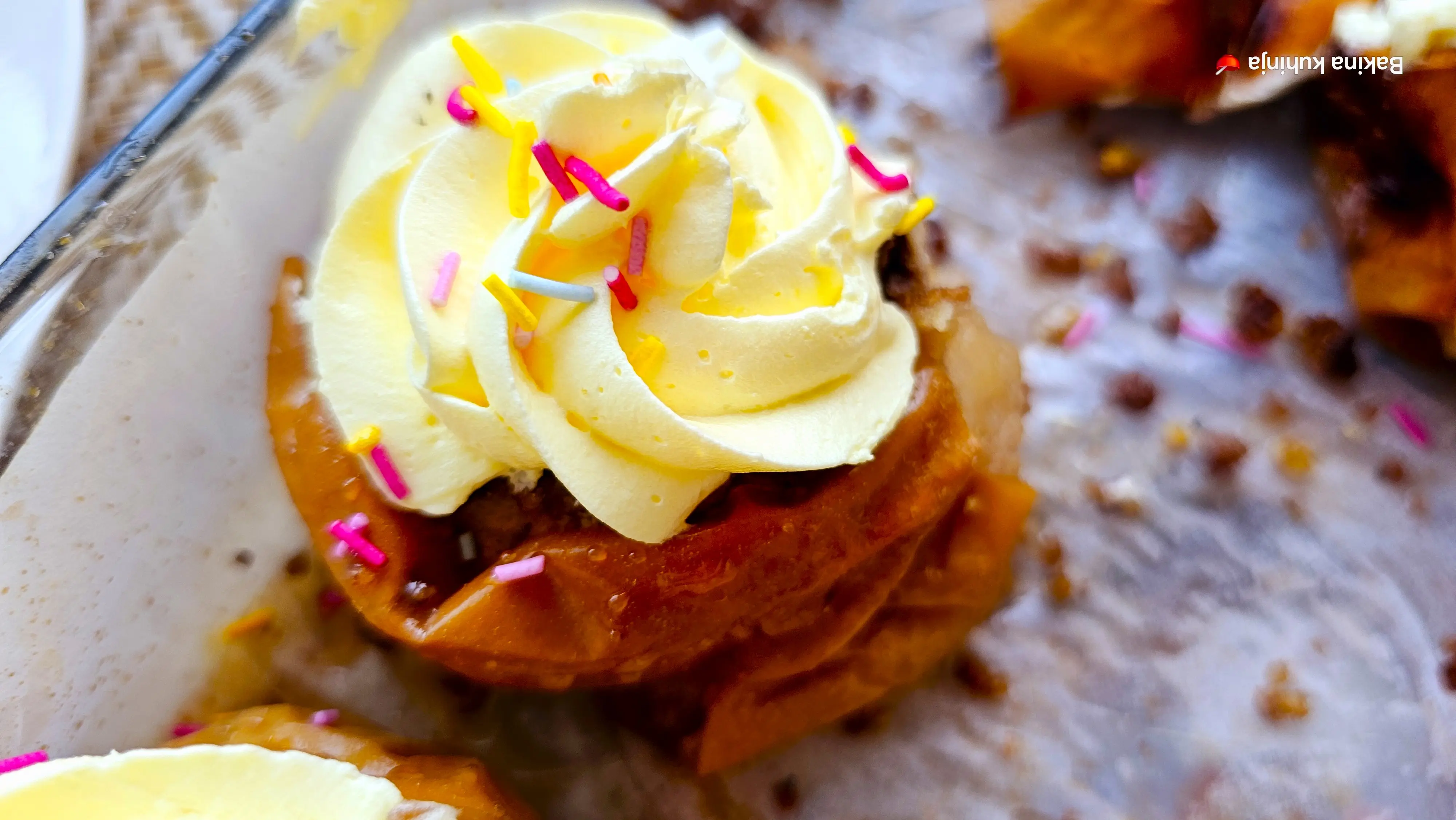 Nekim jabukama će ispucati kora i one su najslađe. Ohlađene servirati sa šlagom i sladoledom. Jabuke preliti medem ili istopljenom čokoladom. Sjajna poslastica, gotova za 30 minuta.