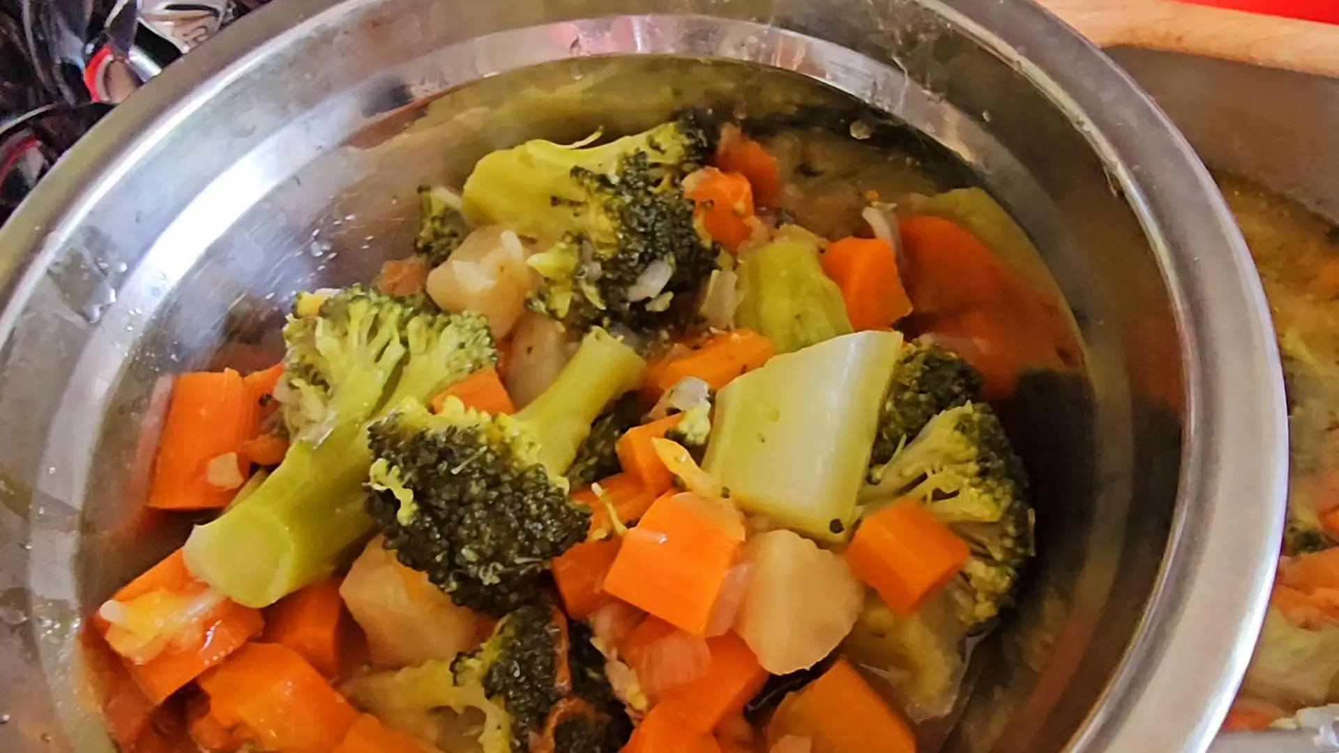 Dodati suvi začin i so po želji, kao i mleveni biber, pa izvaditi malo brokolija i povrća na tanjir, ostalo blenderom izblendati i vratiti povrće.