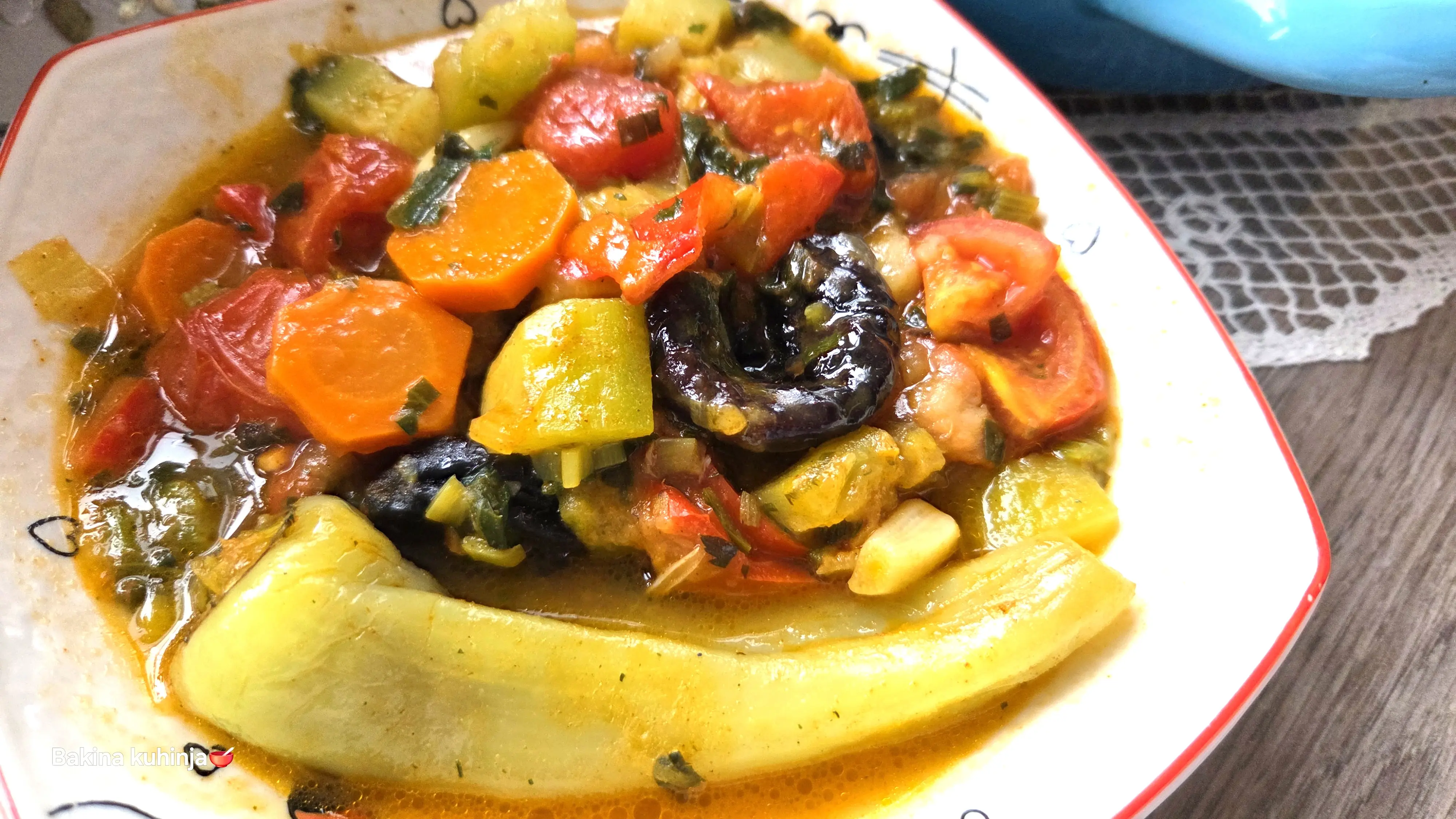 Na malo ulja prvo dobro izdinstajte praziluk, papriku i šargarepu dok ne omekšaju, pa dodajte veliku tikvicu isečenu na krupnije kocke i jedan mali krompir koji će dati potrebnu gustinu. Dinstajte na tihoj vatri dok povrće ne pusti svoj sok, a zatim ubacite četiri iseckana paradajza da jelo dobije onu finu kiselu notu i postane bogato.