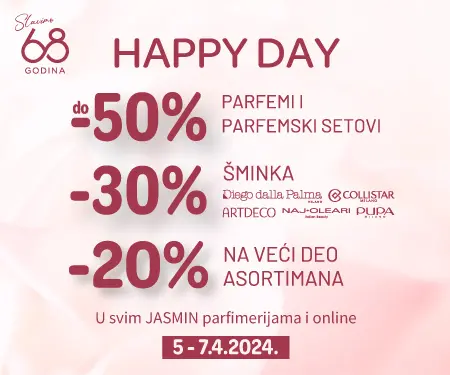 Povodom 68. rođendana, Jasmin parfimerije pripremile su neodoljive popuste, koji će biti dostupni od 5. do 7. aprila u svim parfimerijama, kao i u sklopu online prodavnice.