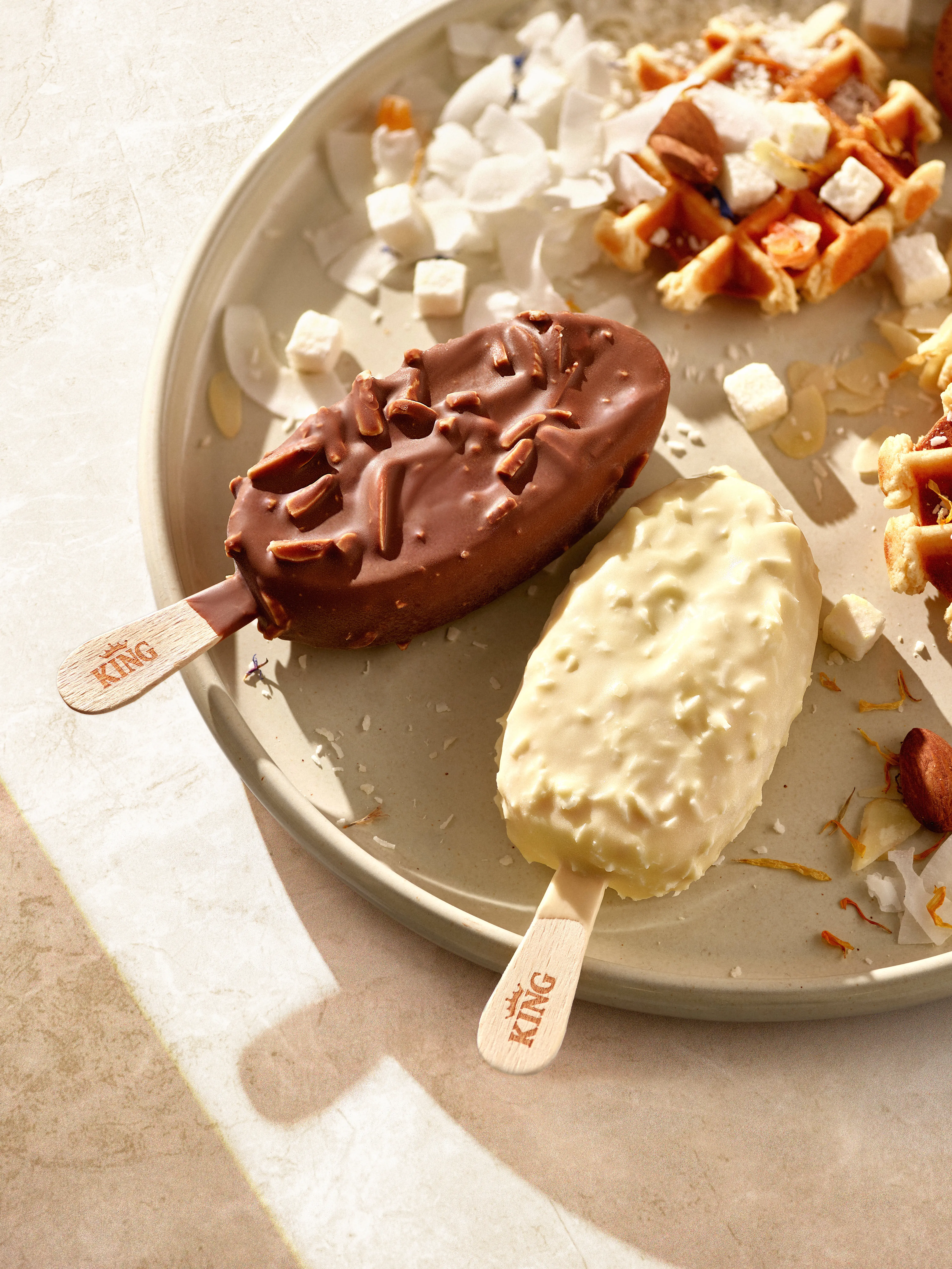 S druge strane, KING Infinity je pravi izbor za one koji vole bogat i proveren ukus u nešto elegantnijem izdanju. Kremasta bourbon vanila savršeno se dopunjuje sa mlečnom čokoladom i komadićima badema, stvarajući balans između nežne teksture i hrskavosti. To je moderna verzija omiljenog klasika, napravljena u prepoznatljivom KING stilu.