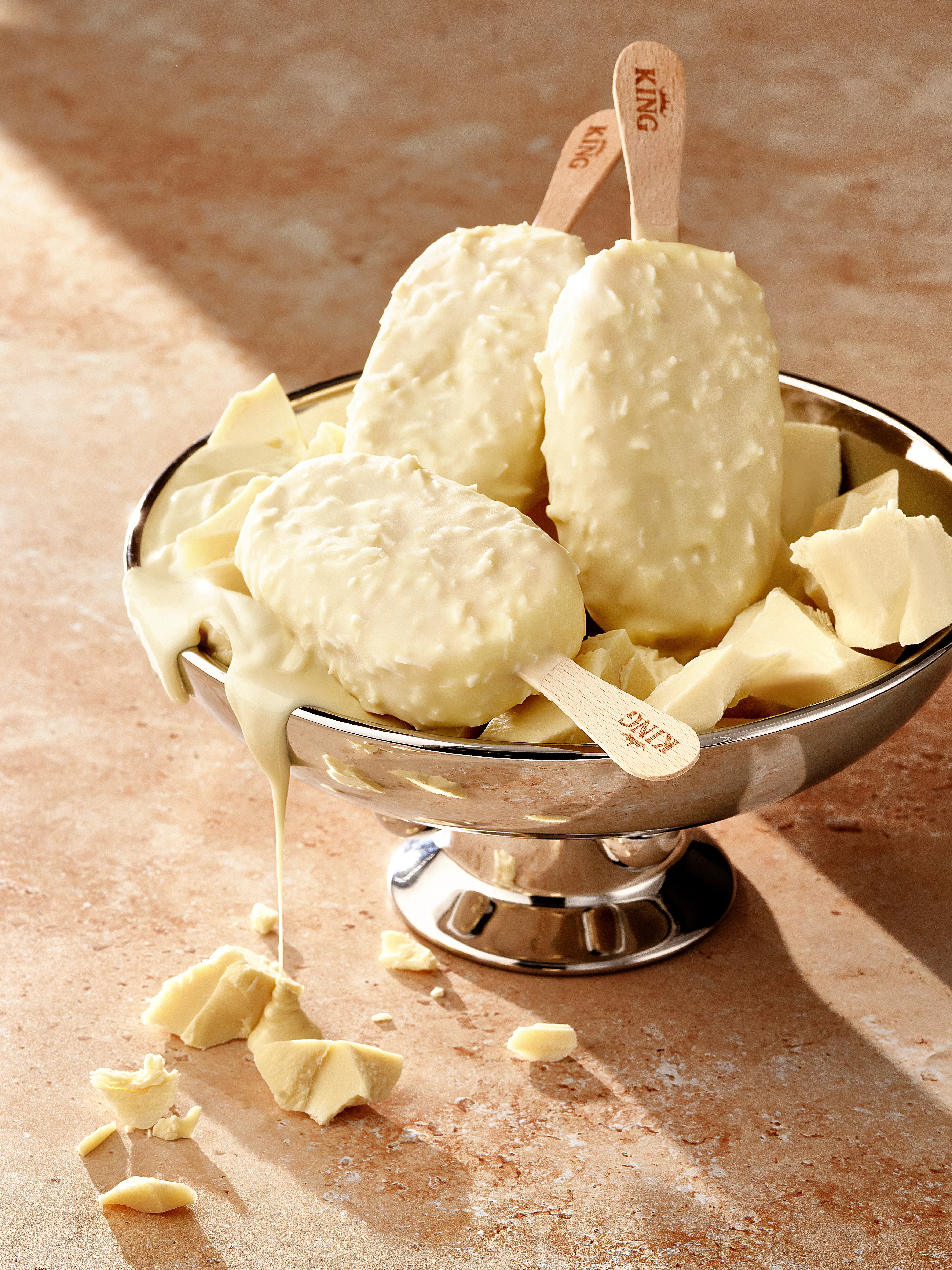 KING Bliss je stvoren za trenutke čistog uživanja. U srcu ovog sladoleda je bogato punjenje od kokosa, ušuškano u kremasti sladoled od vanile koji je obložen slojem sa ukusom vafla. Sve je preliveno finom belom čokoladom i komadićima kokosa, stvarajući savršen spoj tekstura koji vas vodi na pravo egzotično putovanje već pri prvom zalogaju.