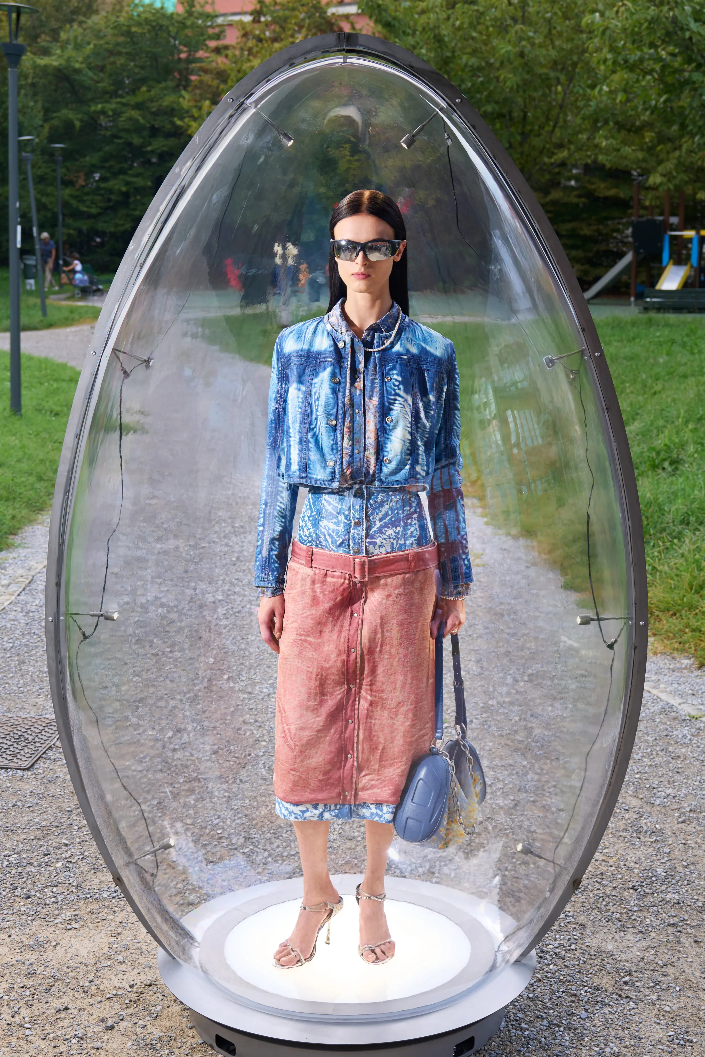 Uz podršku Grada Milana, 55 autfita bilo je postavljeno u gigantske, prozirne jajaste instalacije, dostupne svima, bez ulaznice i bez prepreka. Moda je, makar na trenutak, prešla iz ekskluzivnog sveta u svakodnevni život, postavši igra u kojoj svako ima mesto u prvom redu.
