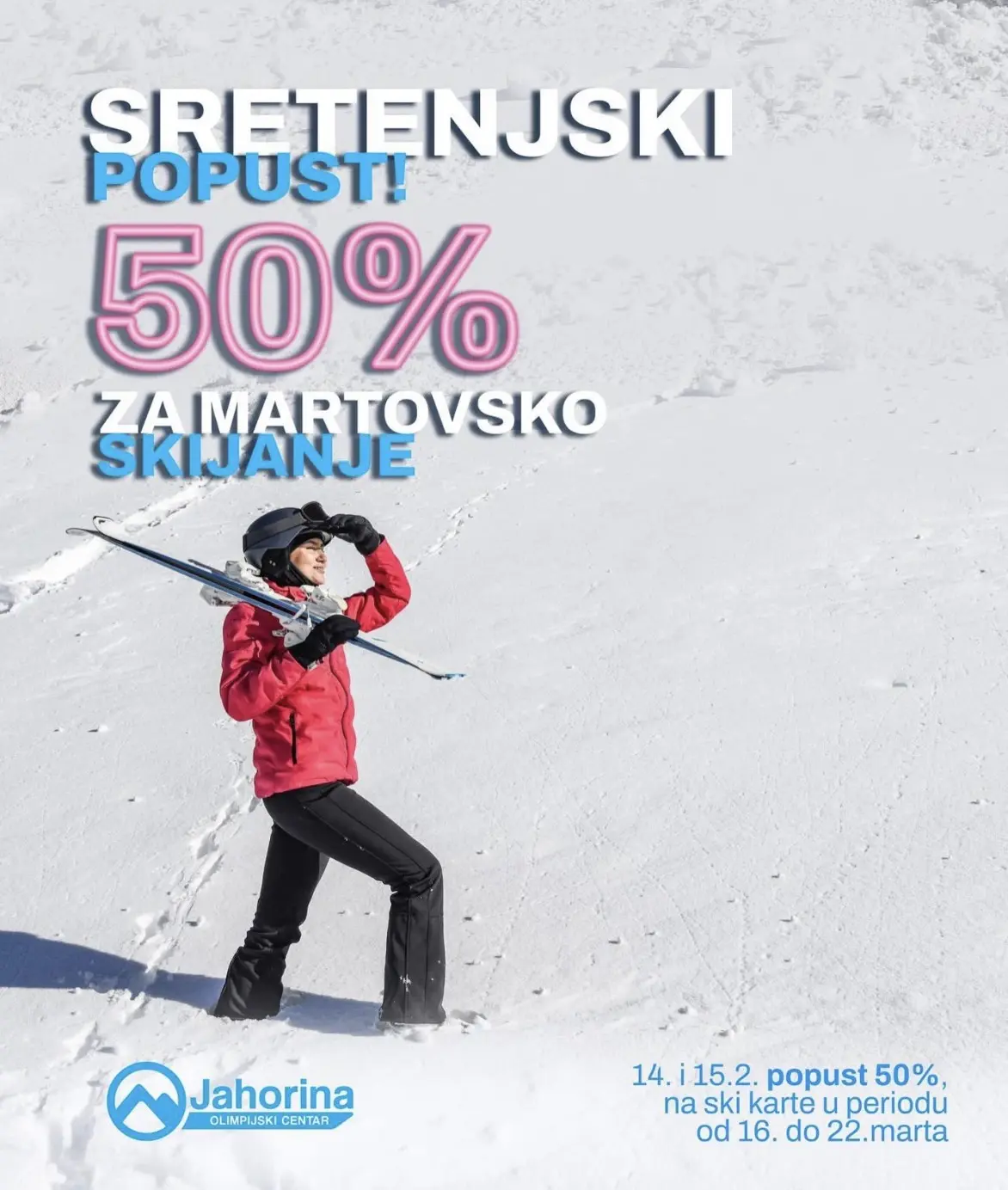 U terminu 14. i 15. februara važi poseban Sretenjski popust – svi koji tih dana na kasi kupe ski-kartu za period od 16. do 22. marta ostvaruju pravo na 50% popusta. Pogodnost se odnosi isključivo na kupovine realizovane u navedenim datumima.