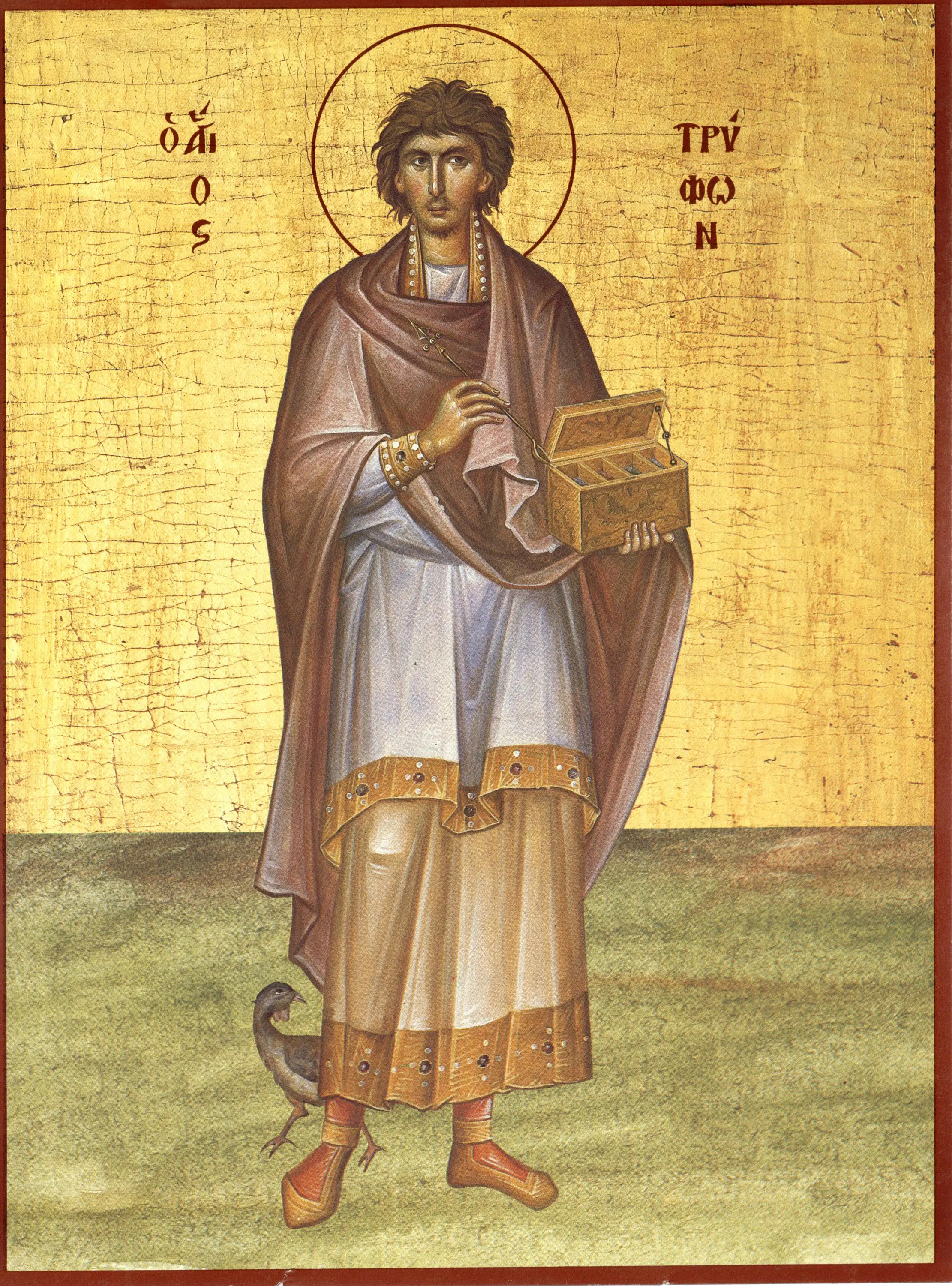 Sveti Trifun je živeo u 3. veku nove ere u Maloj Aziji. Legenda kaže da je imao čudotvorni dar lečenja i da je njime uspeo da “od zlog duha” izleči ćerku rimskog cara Gordija.