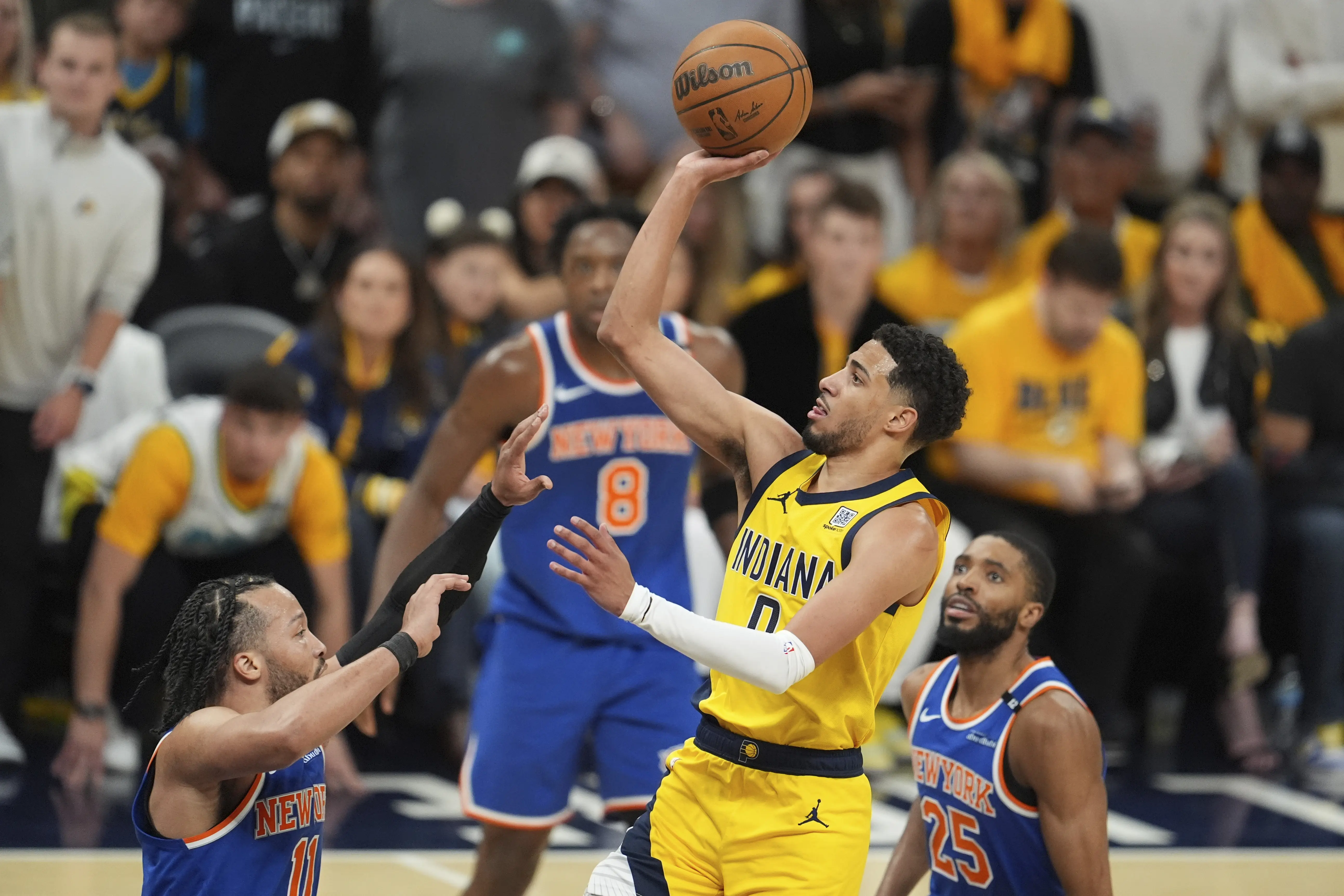 Košarkaši Indijane savladali su Njujork rezultatom 125:108 u šestoj utakmici finala Istočne konferencije i sa 4:2 u pobedama plasirali se u veliko finale NBA lige.