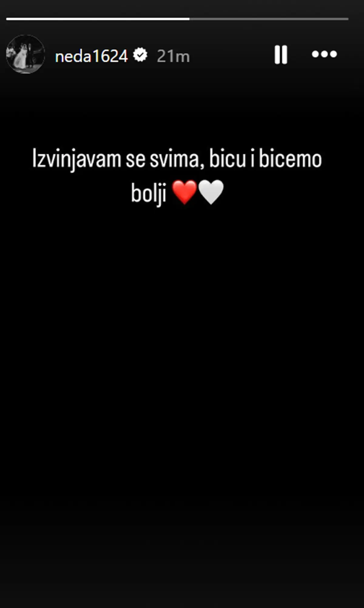"Izvinjavam se svima, biću i bićemo bolji", napisao je Nedović na svom Instagram profilu.