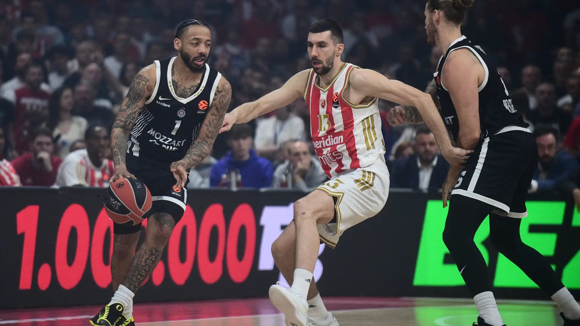 Partizan je pobedio crveno-bele rezultatom 82:89, u pravom triler meču. Ovom pobedom su izabranici Đoana Penjaroje upisali šestu uzastopnu pobedu u ovom evropskom takmičenju.