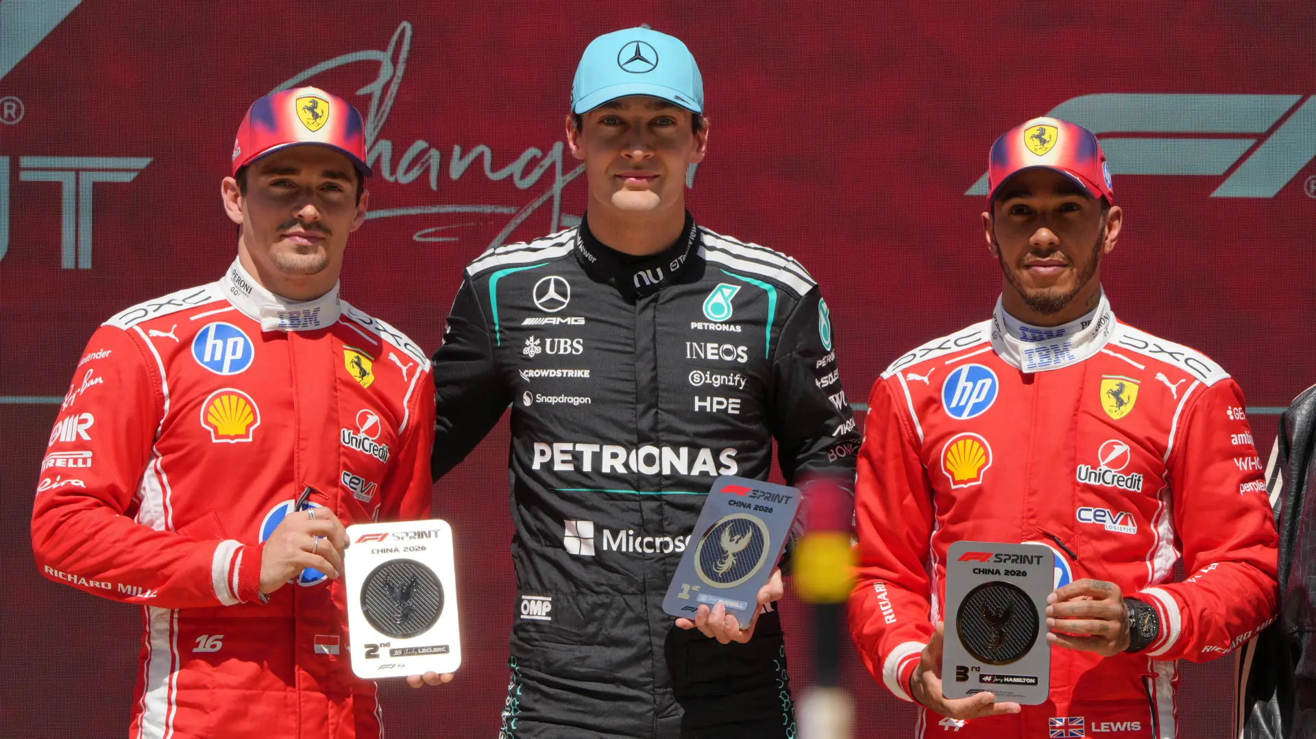 Vozač Ferarija Šarl Lekler završio je sprint trku na drugom mestu sa 0,674 sekunde zaostatka, dok je treću poziciju zauzeo njegov timski kolega Luis Hamilton sa 2,554 sekunde iza Rasela.