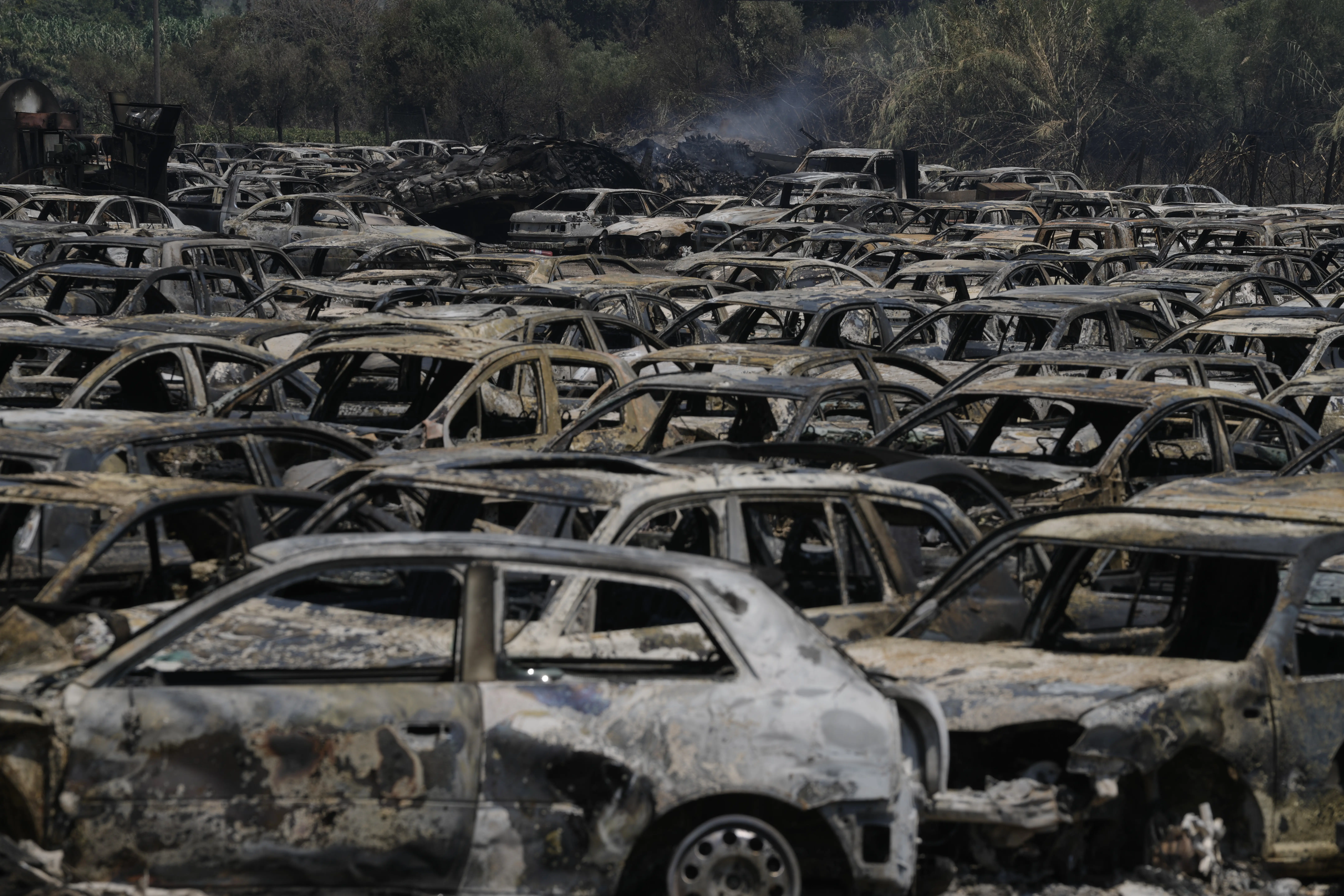 Foto: Tanjug/AP PhotoThanassis StavrakisOko 550 oduzetih automobila potpuno je izgorelo u požaru na parkingu carinske službe u Patrasu, na zapadu Grčke.