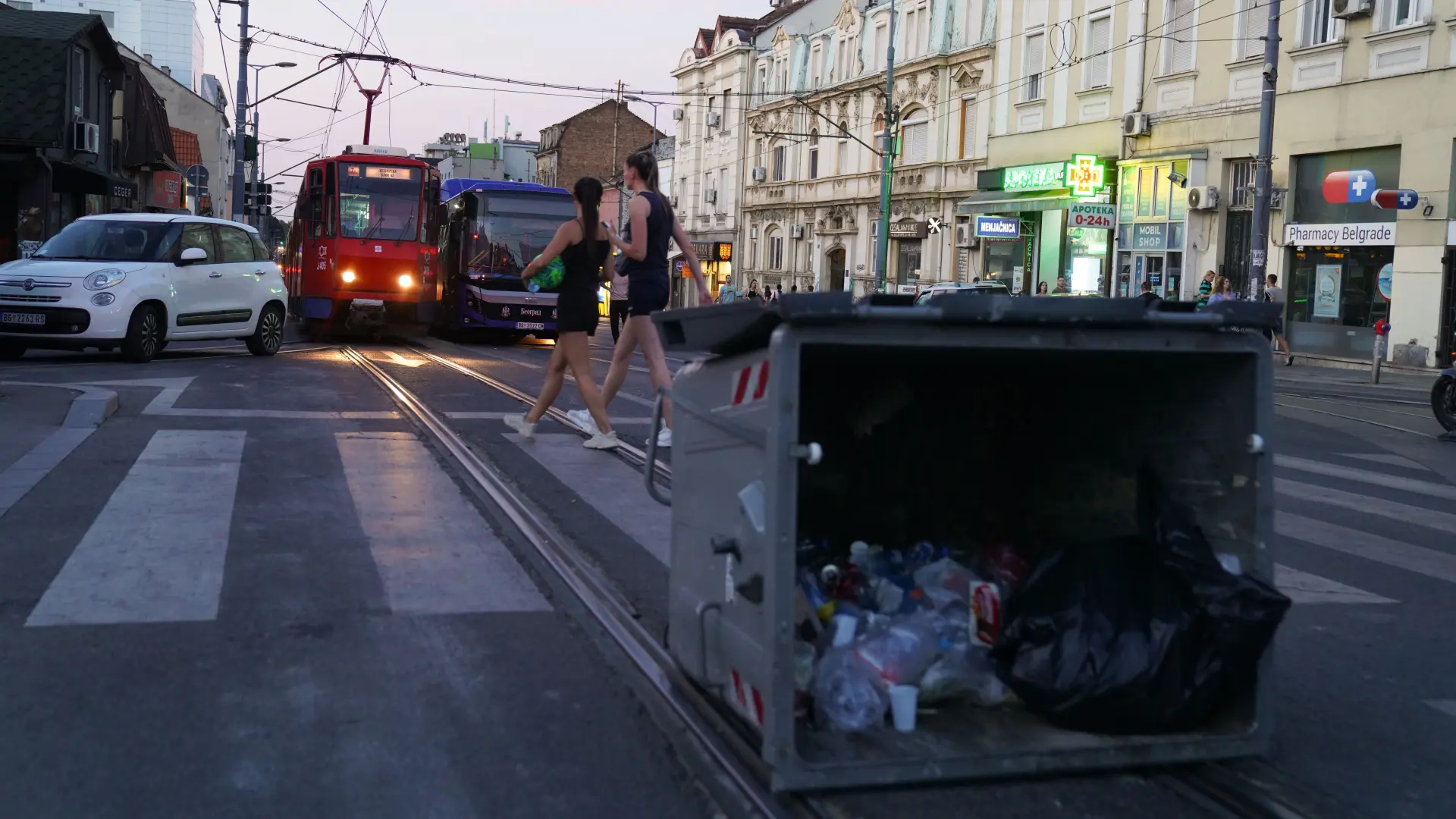 Građani su postavili dodatne kontejnere, drvene palete i bicikle kako bi fizički blokirali raskrsnicu. Vozila obilaze blokadu koristeći pešačku stazu. Tramvaji i autobusi gradskog prevoza su zaustavljeni na obe strane ulice.