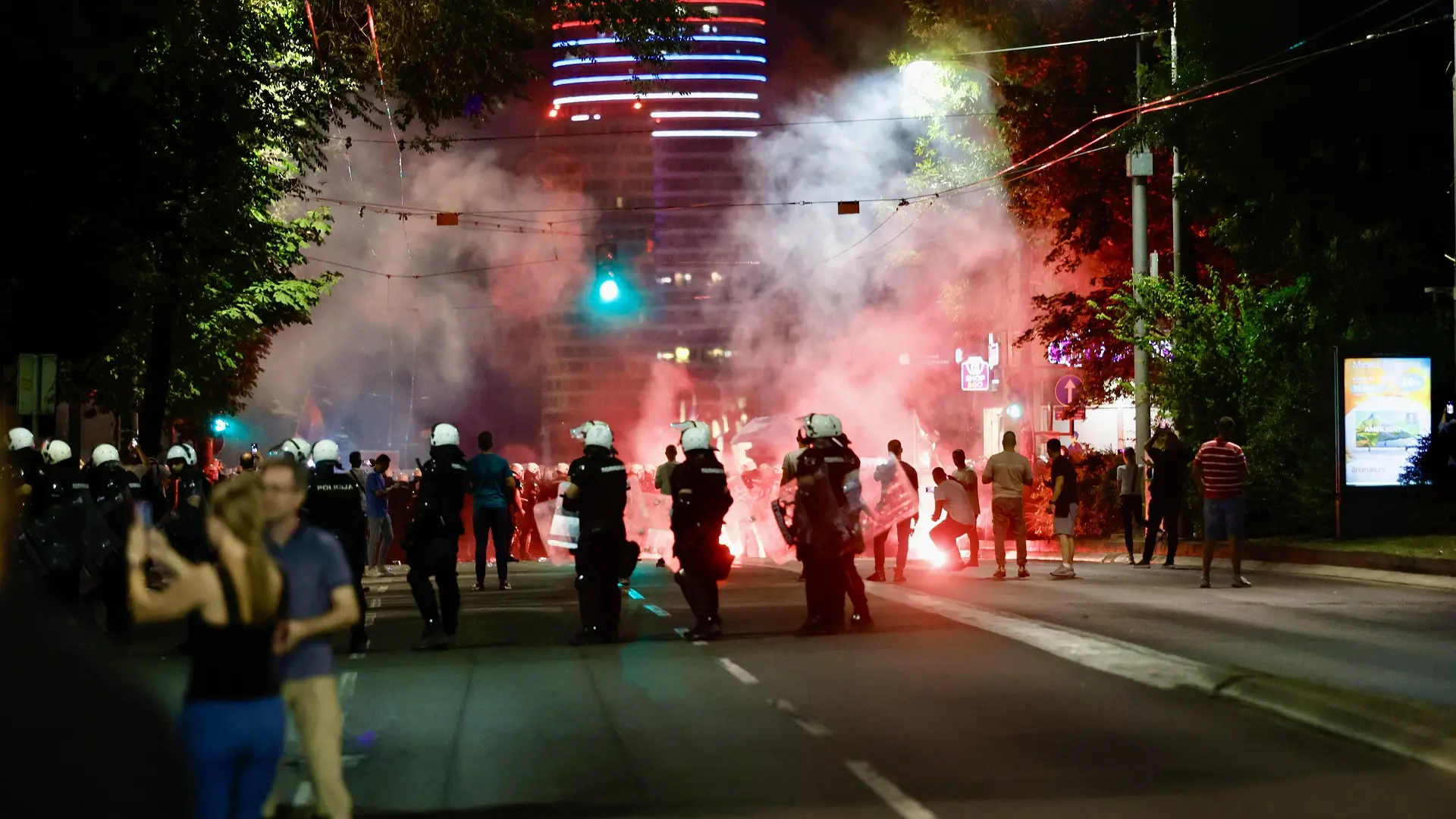 Foto: Tanjug/Rade PrelićDirektor policije Dragan Vasiljević izjavio je da je u centru Beograda privredno više desetina izgrednika, a da je u neredima povređeno šest policijskih službenika, kao i da su sve policijske jedinice postupale krajnje profesionalno i upotrebile minimalnu silu.