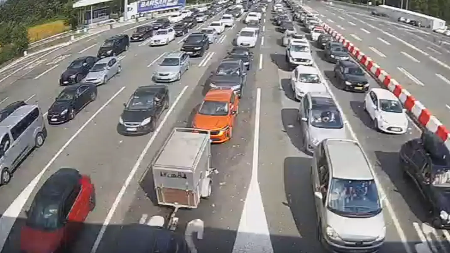 Na kamerama se mogu videti duge kolone automobila, a nervozni putnici izlaze iz svojih vozila i šetaju pored puta