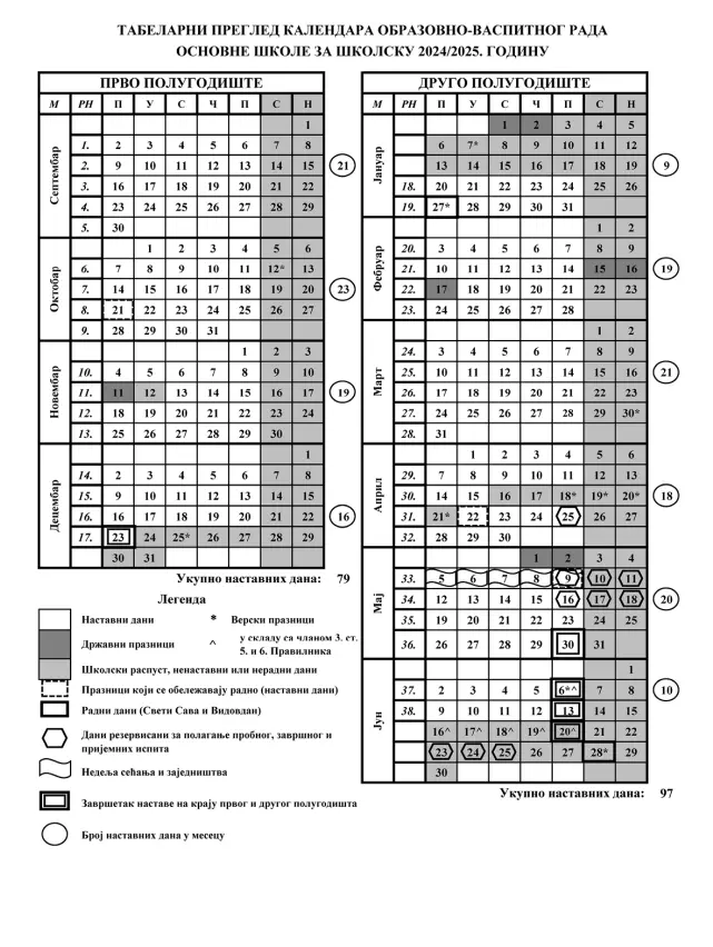 Pravilnik je objavljen sa tabelarnim kalendarom