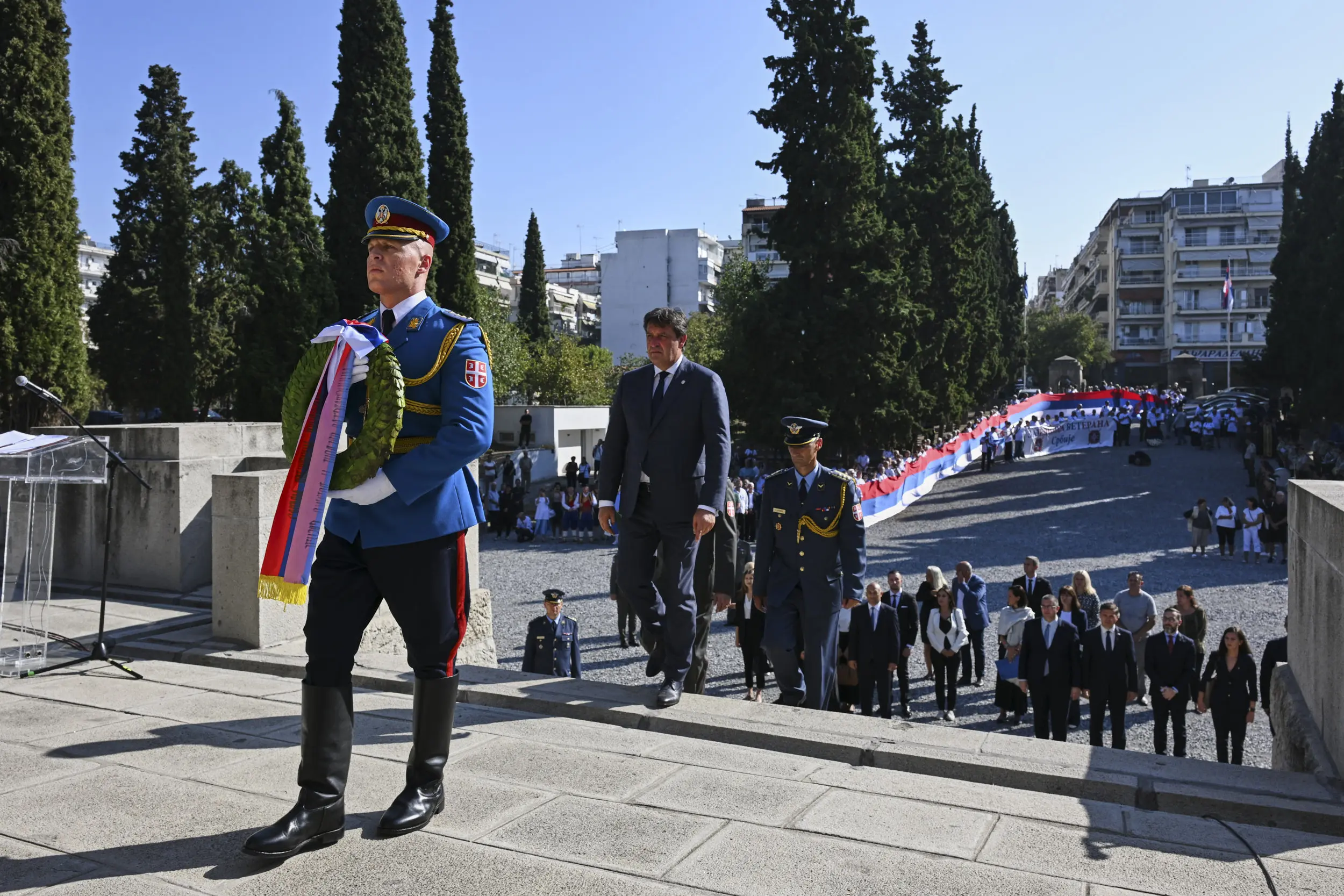 Foto: Ministarstvo odbrane SrbijeU okviru kompleksa vojničkog groblja Zejtinlik u Solunu, ministar odbrane Bratislav Gašić, sa ministrom za rad, zapošljavanje, boračka i socijalna pitanja Nemanjom Starovićem otkrio je spomen-bistu posvećenu Đorđu Mihailoviću, koji je celi svoj život posvetio očuvanju sećanja na heroje iz Prvog svetskog rata.