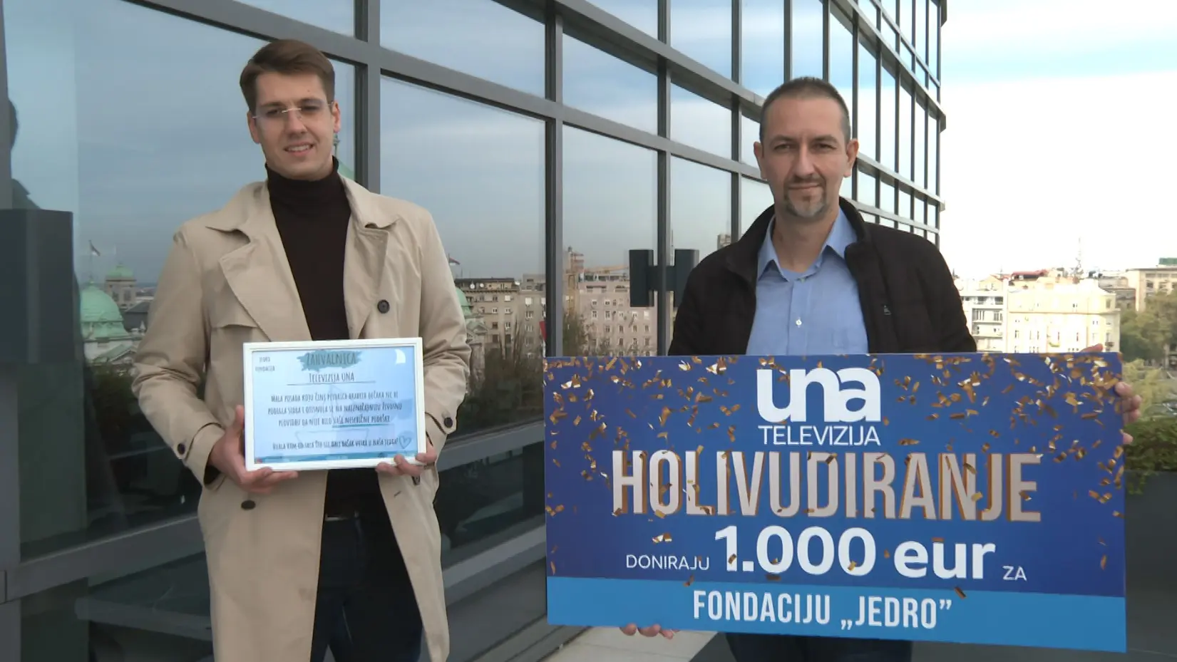 Uručenje je, ipak, ovog puta, bilo obostrano. Naša televizija dobila je zahvalnicu zbog, kako kažu u "Jedru", nesebične podrške toj fondaciji.