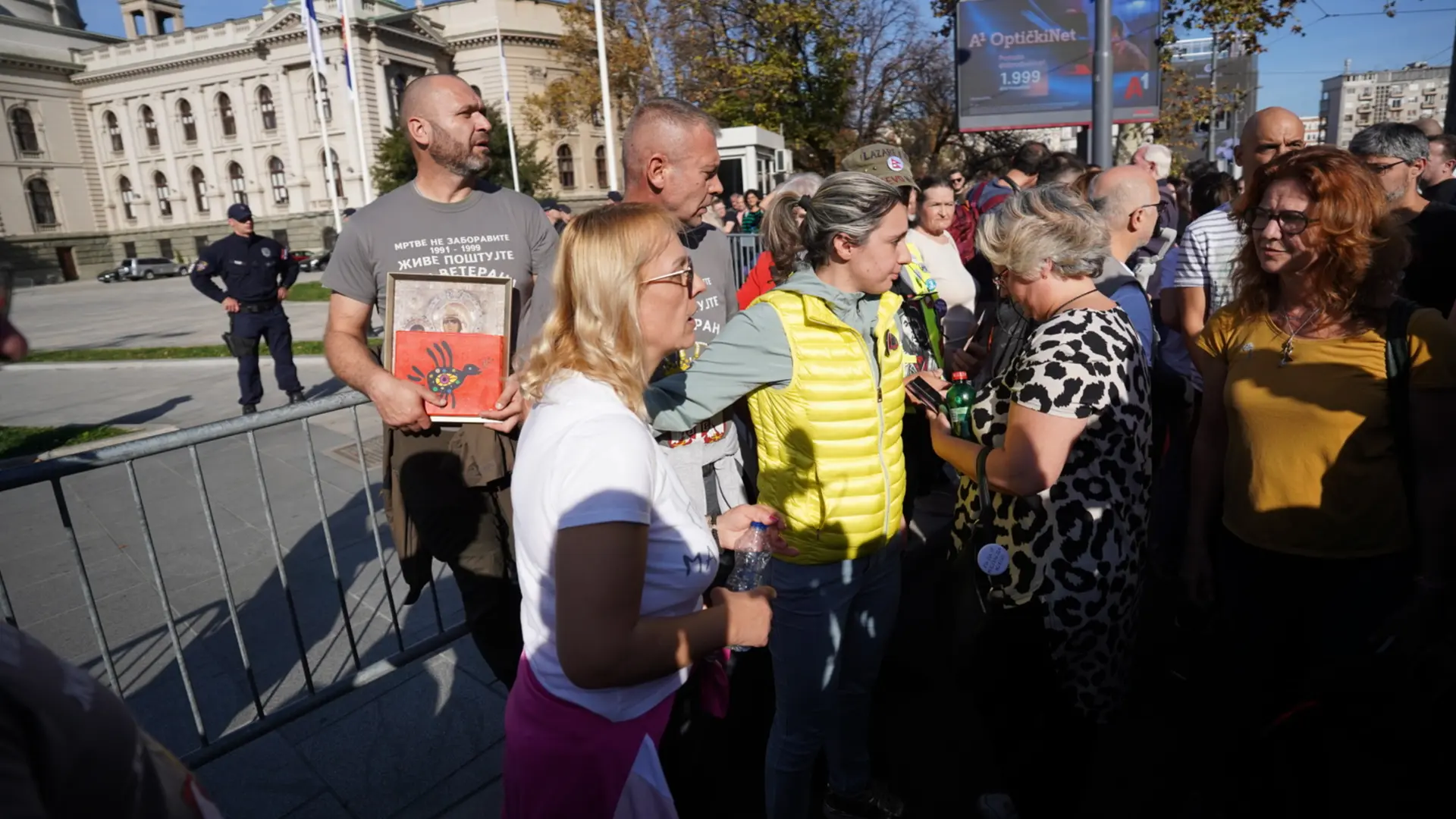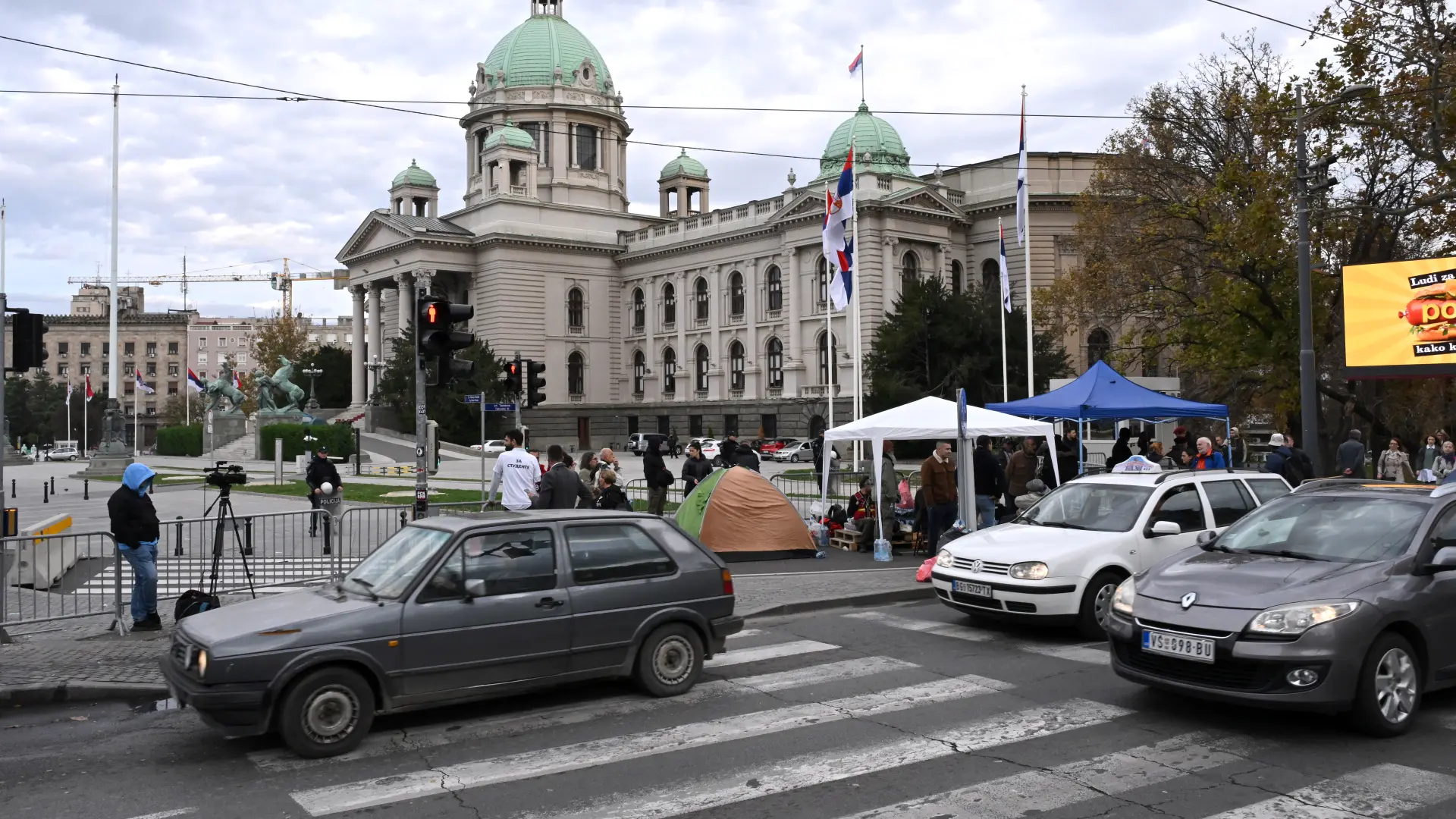Na uglu Takovske ulice i Bulevara kralja Aleksandra je improvizan krevet na kom je smeštena Dijana Hrka, čiji je sin stradao u padu nadstrešnice na Železničkoj stanici u Novom Sadu, a okupljena je i manja grupa građana koji joj pružaju podršku. Na platou ispred Skupštine Srbije raspoređen je manji broj pripadnika policije.