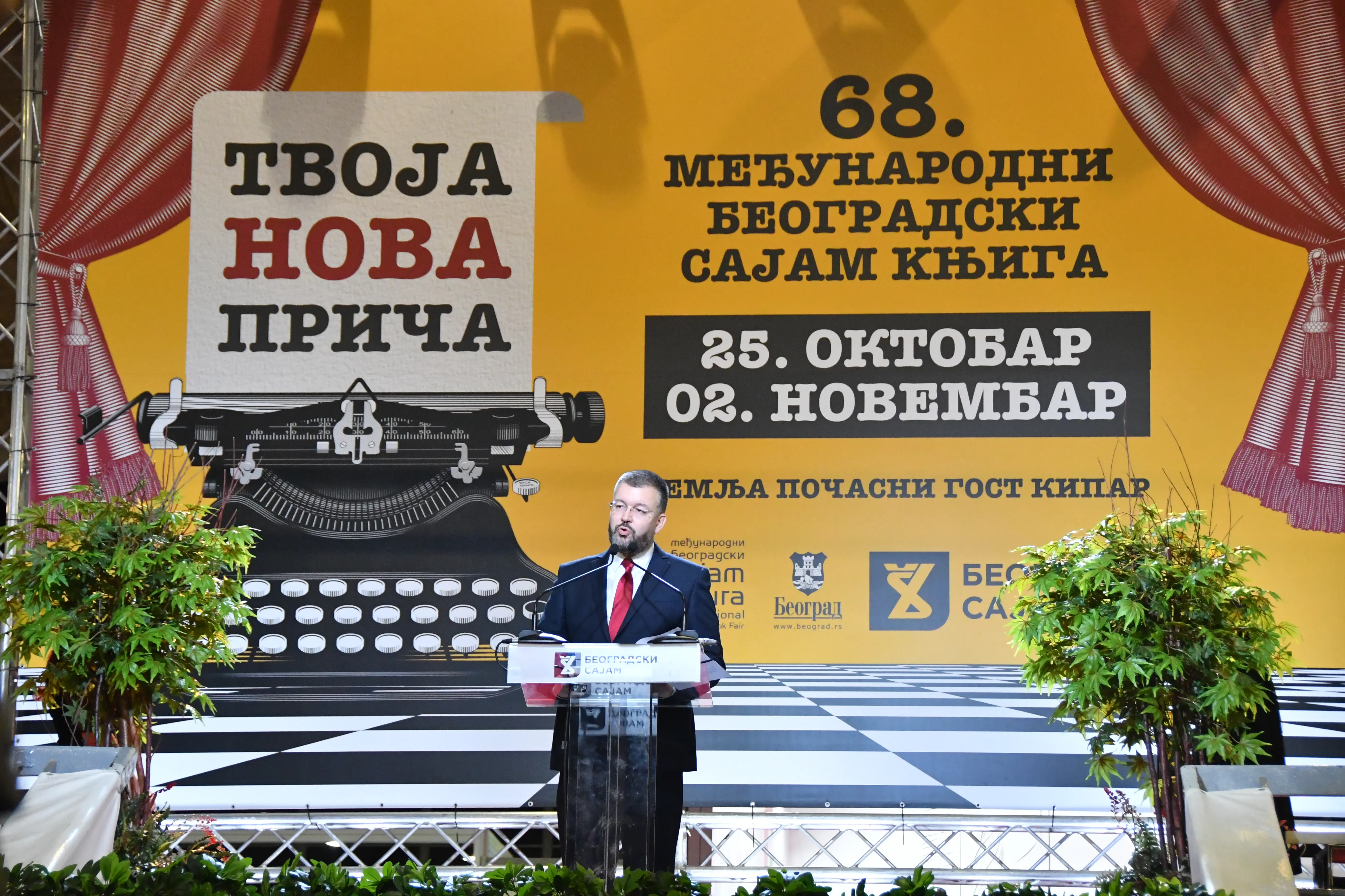 Sajam je otvorio istoričar Čedomir Antić, ističući značaj knjige i pisane reči u očuvanju kulturnog identiteta. Antić je u govoru podsetio na istorijske i savremene izazove kroz koje je srpska kultura prolazila i naglasio da je kultura "svetlost u tami i temelj identiteta čovečanstva".