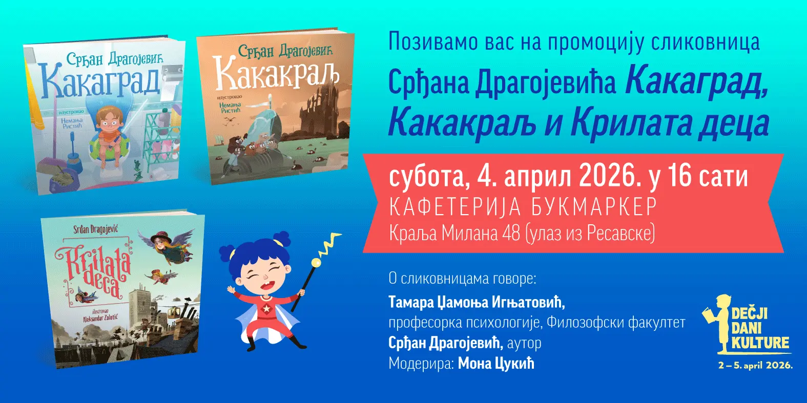 16.00 – Promocija slikovnica „Krilata deca“, „Kakakralj“, „Kakagrad“, Srđan Dragojević