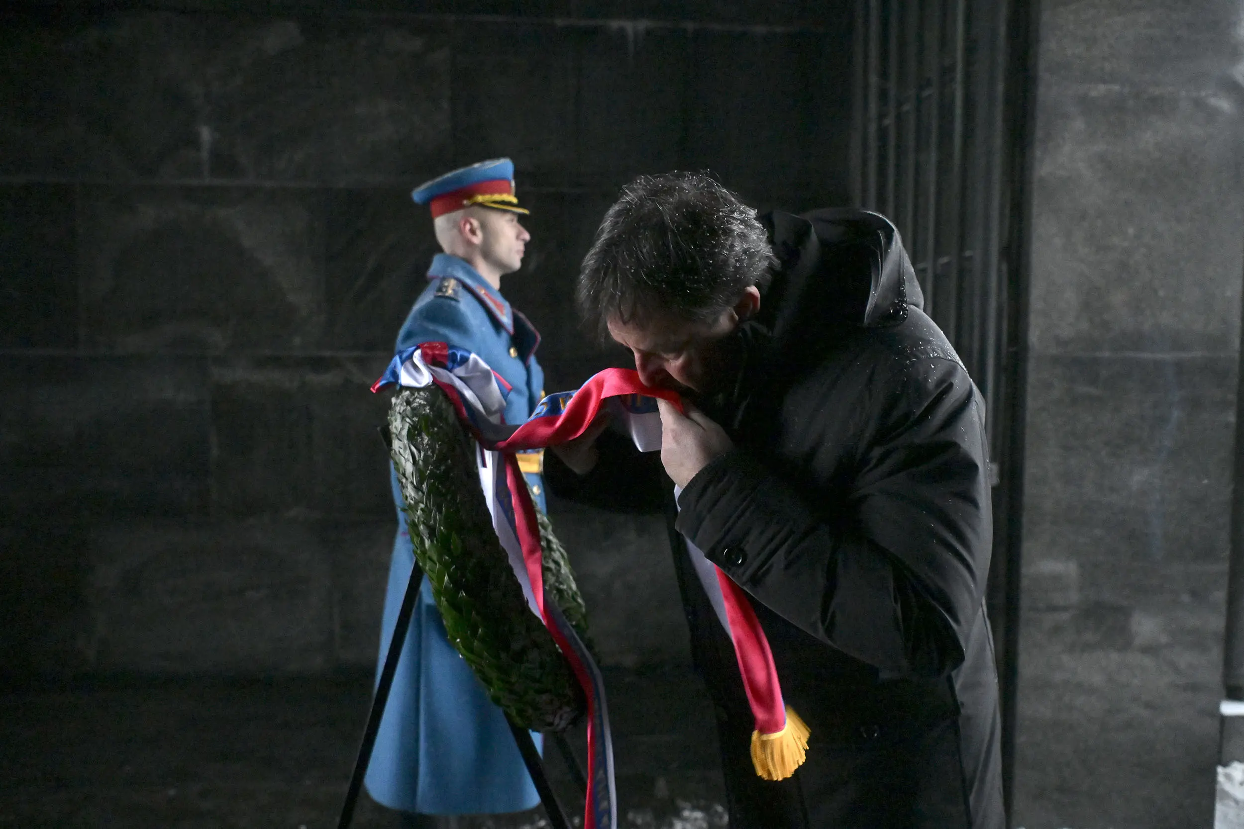"Slobodni, istrajni i hrabri. Srbi su narod koji zahvaljujući snazi duha i volje, uprkos brojnim pokušajima kroz istoriju, nikada nije bio slomljen. Klanjajući se senama vas koji ste nekada branili i odbranili čast i slobodu srpskog naroda i države, mi danas čuvamo vaše zaveštanje ponosno pronoseći nacionalne simbole Republike Srbije. Počivajte u miru. Živela slobodna i ustavotvorna Srbija!".