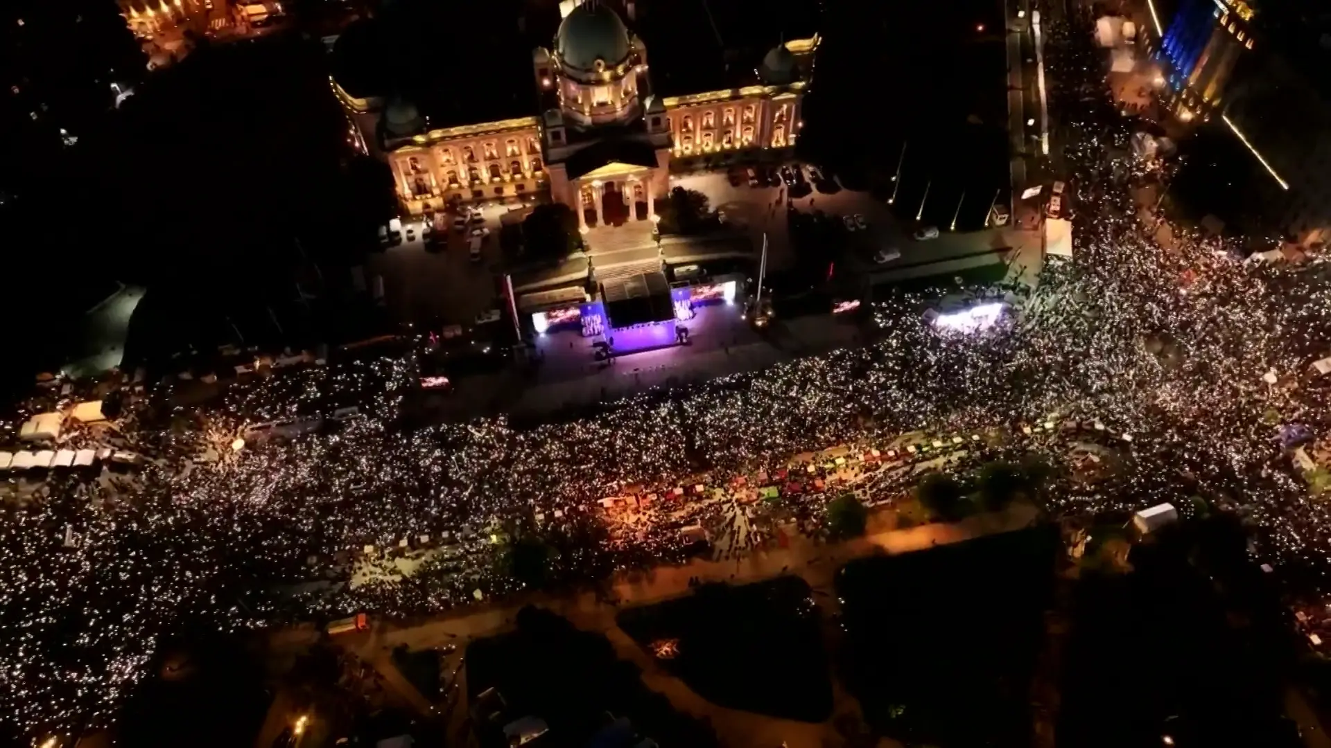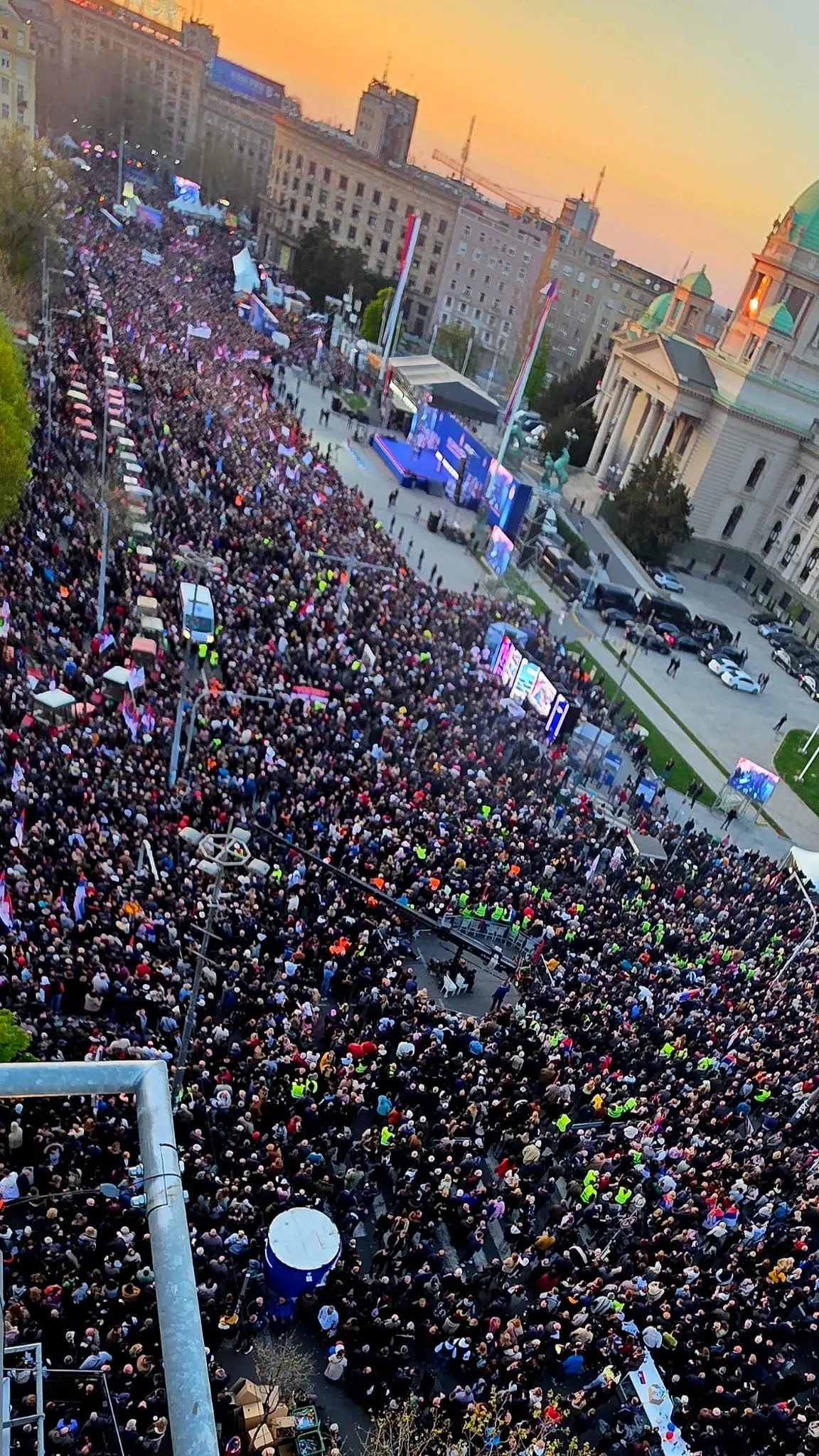 Plato ispred Doma Narodne skupštine i sve okolne ulice ispunjene su građanima koji su nosili zastave Srbije i transparente sa porukama podrške državi i predsedniku Srbije, a mnogi su i tokom obraćanja govornika pristizali ka centru Beograda.