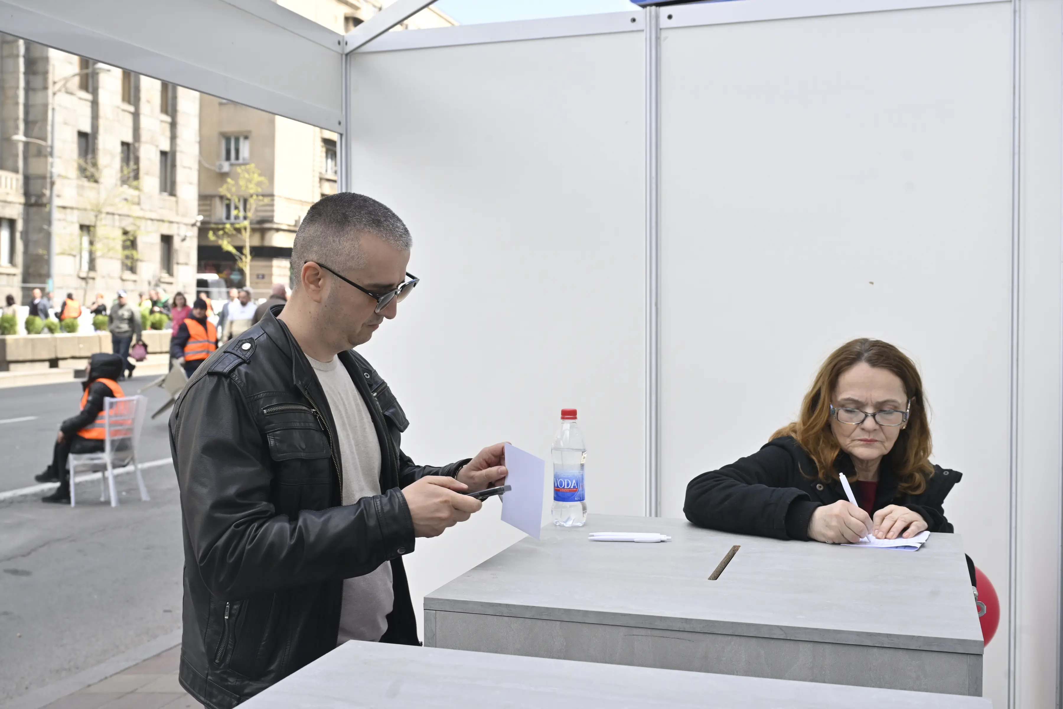 Građani su tokom celog dana obilazili štandove koji su postavljeni na Trgu Nikole Pašića i duž Bulevara Kralja Aleksandra, a među kojima je i veliki štand na kojem građani mogu da se učlane u svenarodni pokret, da glasaju za ime pokreta, ali i da daju svoj predlog za naziv pokreta.