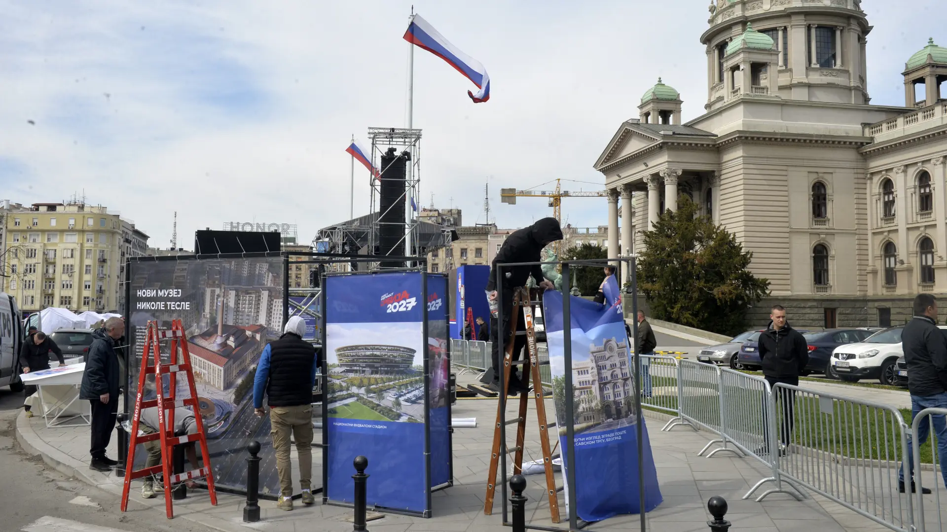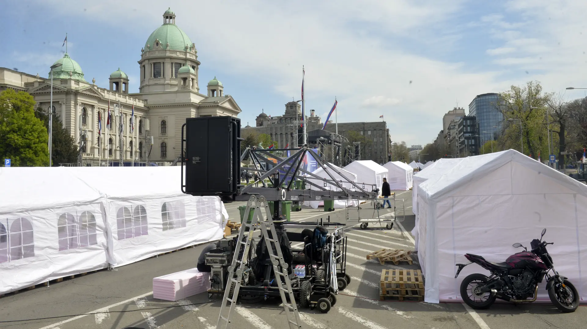 Centralna bina na kojoj će sutra od 19.00 časova biti održan centralni skup postavljena je na Trgu Nikole Pašića ispred Skupštine