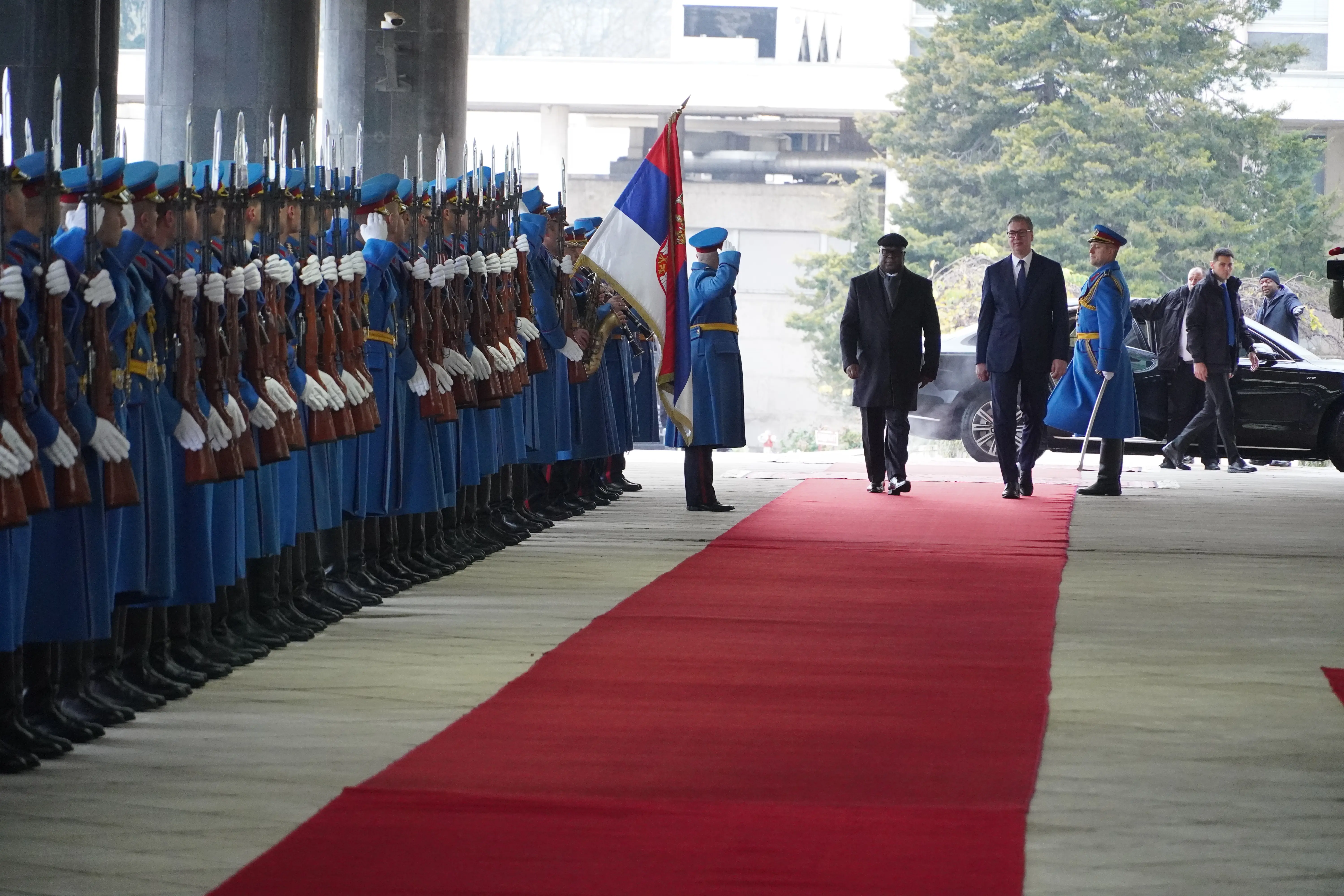 Predsednik DR Konga dočekan je uz najviše državne počasti, crveni tepih, intoniranje himni dve zemlje i počasni stroj garde Republike Srbije.