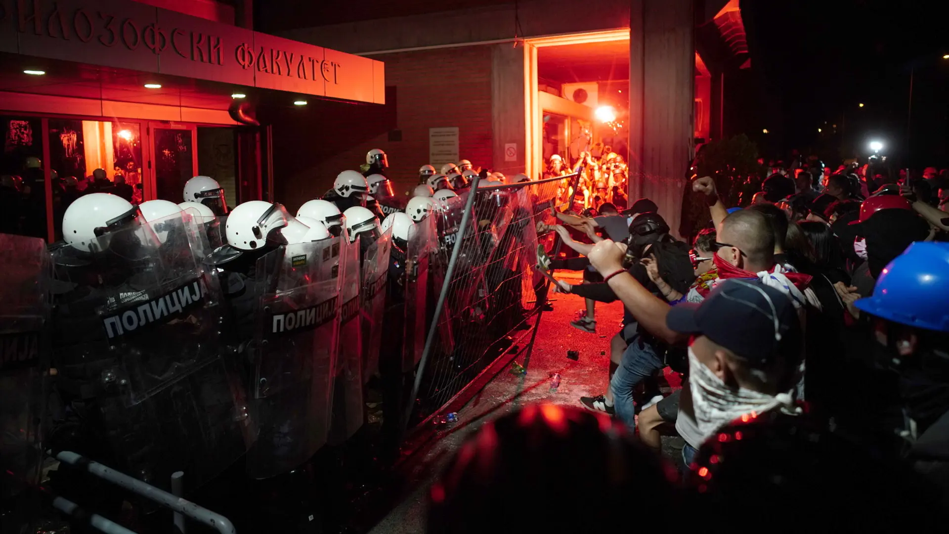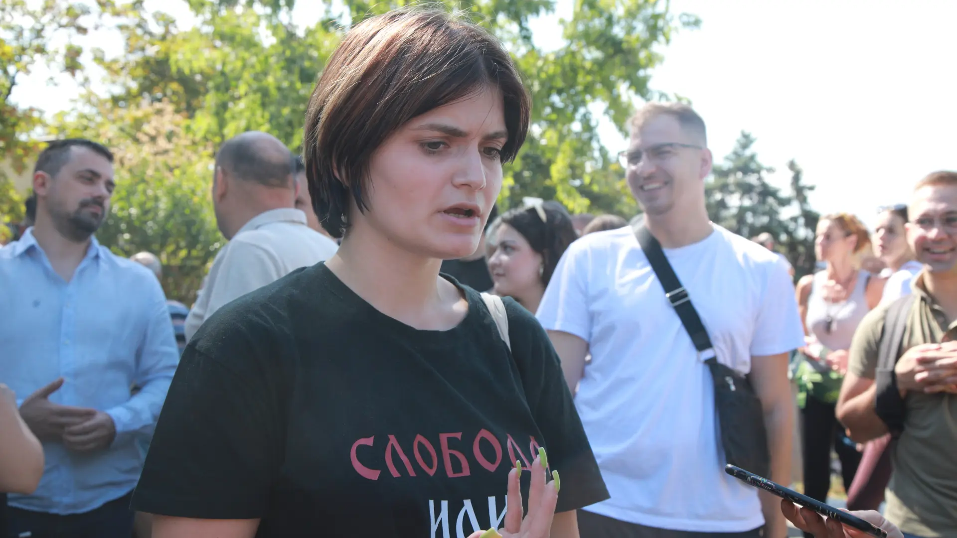 Ispred zgrade Jedinice za obezbeđenje određenih ličnosti i objekata, gde su okupljeni zastali, obratila se studentkinja Fakulteta političkih nauka (FPN) Nikolina Sinđelić.