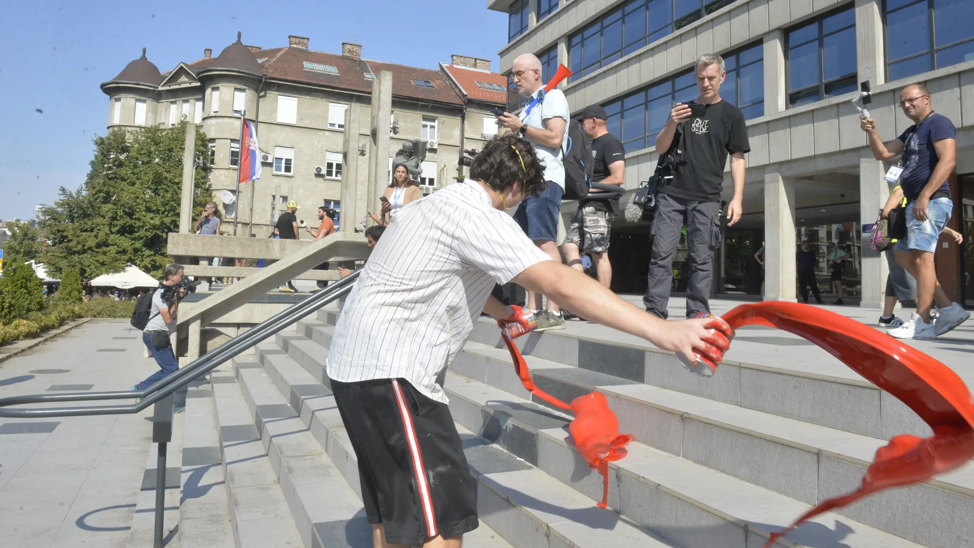 Studenti su se na početku šetnje rasporedili na raskrsnici Nemanjine i Kneza Miloša, a saobraćaj je bio obustavljen u prisustvu saobraćajne policije. Okupljeni su pravili buku pištaljkama i trubama, a ispred zgrade Vlade su prolili crvenu farbu.