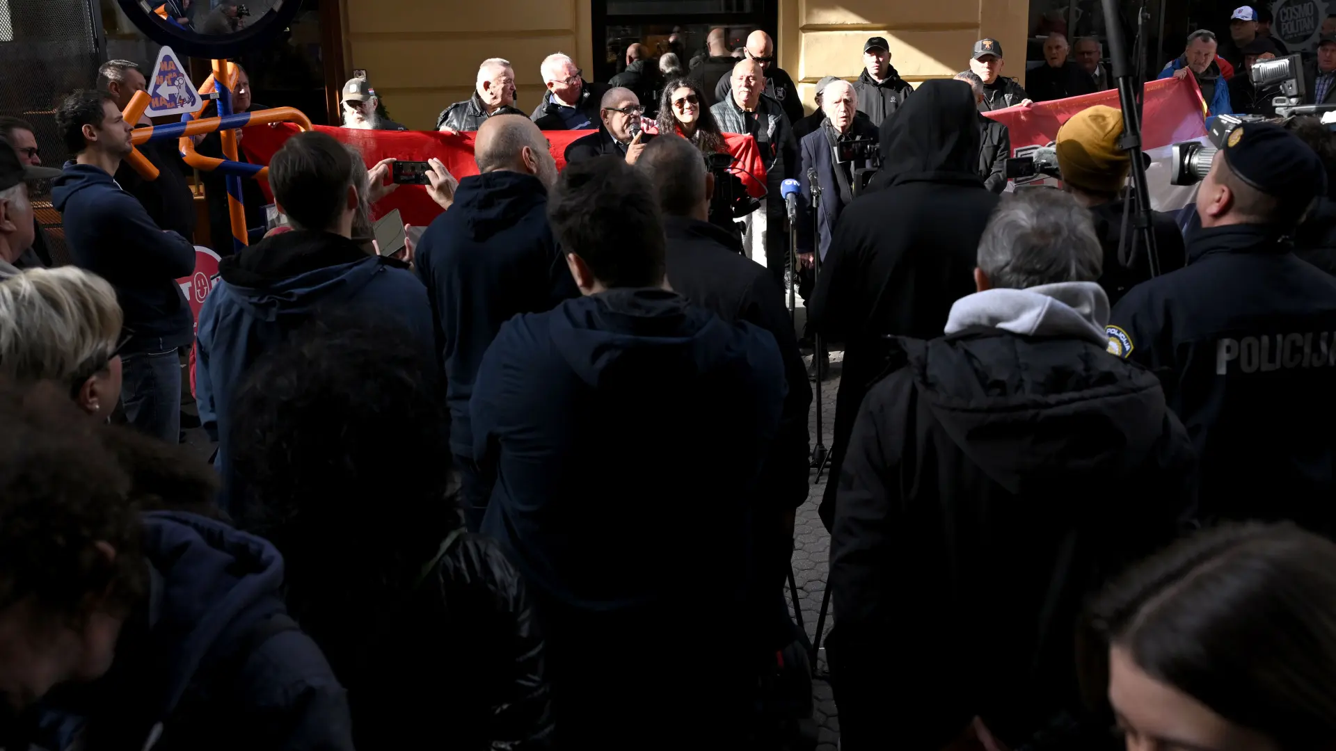 Nakon toga su pevali rodoljubive pesme, podizali desnice i dobacivali novinarima.