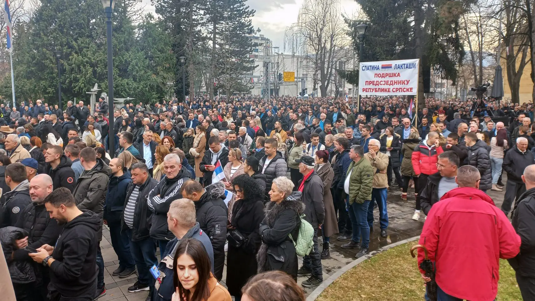 Dodik je, obraćajući se okupljenima na mitingu, rekao da nema razloga za zabrinutost i da "moramo biti veseli"