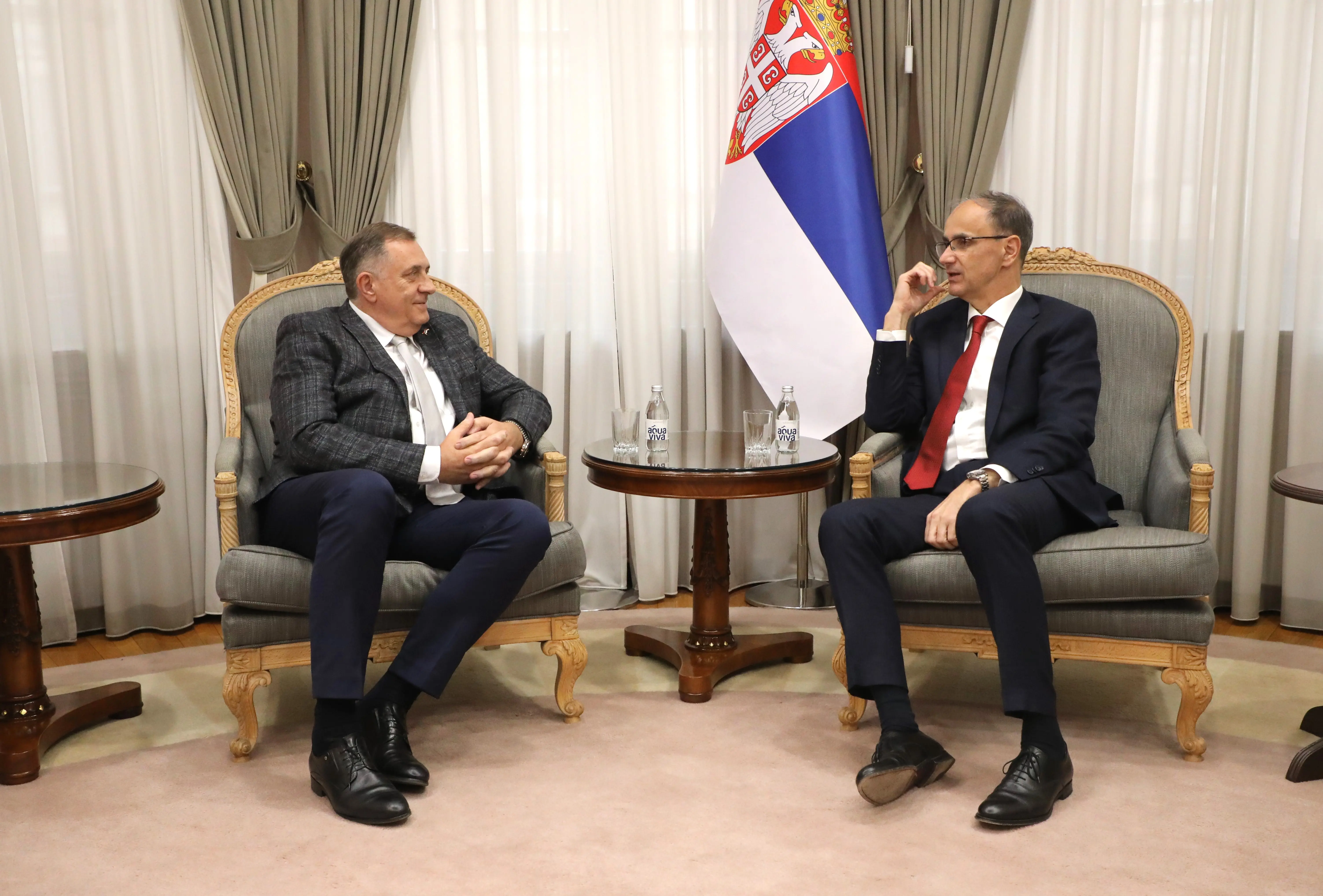Foto: Tanjug/VLADA REPUBLIKE SRBIJE/ SLOBODAN MILJEVIĆ (STF)Predsednik Republike Srpske Milorad Dodik saopštio je da se danas u Beogradu sastao sa premijerom Srbije prof. dr Đurom Macutom, sa kojim je razgovarao o zajedničkim ciljevima RS i Srbije.