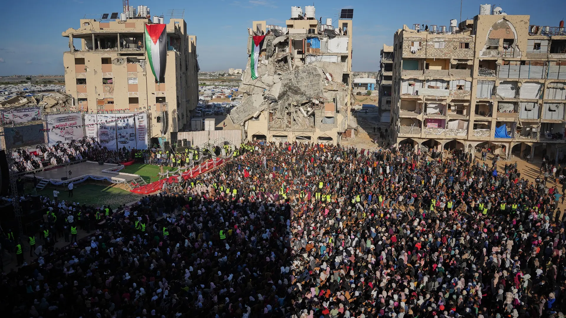 Proslava je održana u trenutku kada je većina od dva miliona stanovnika Gaze raseljena, dok su čitava gradska područja uništena.