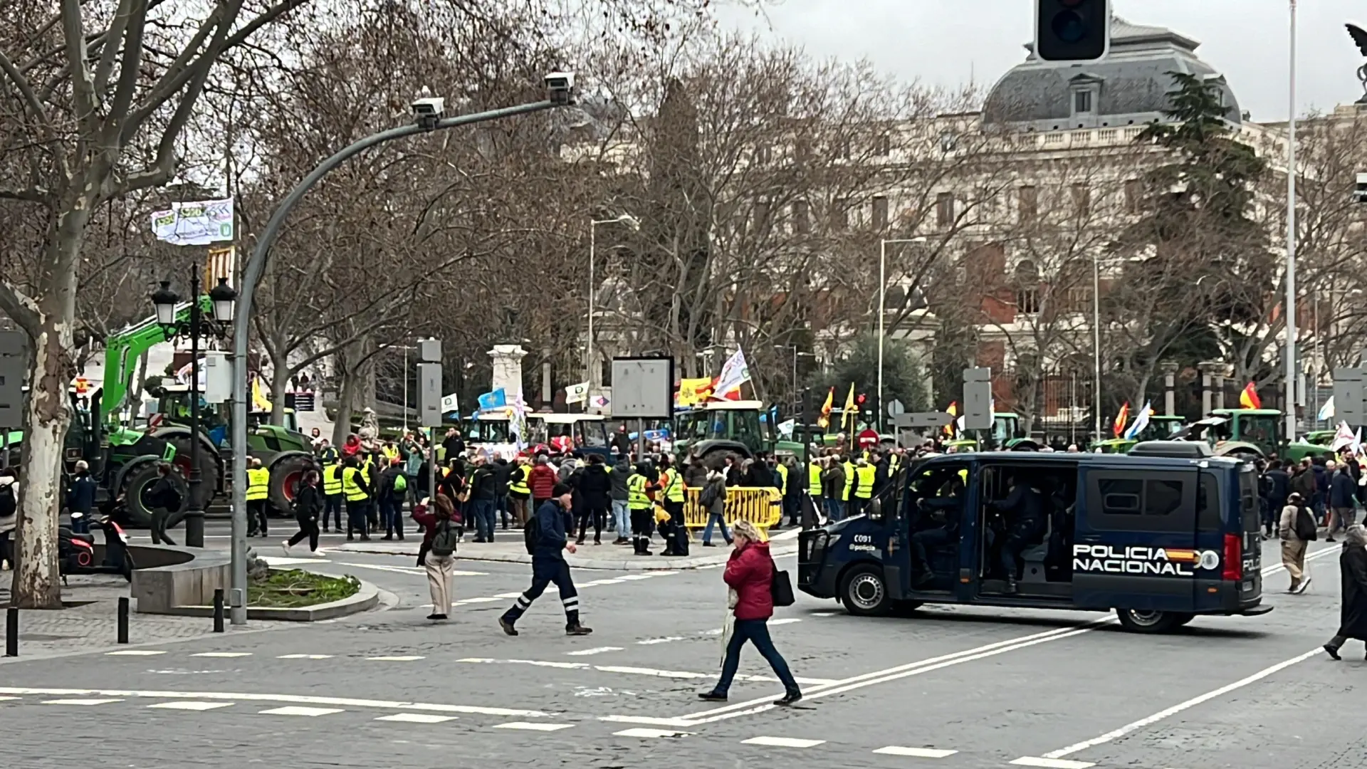 Stotine traktora stigle su u Madrid u pet kolona iz različitih delova Španije i uputile se ka centru grada, od Trga Kolon do Ministarstva poljoprivrede, praktično zaustavivši saobraćaj.
