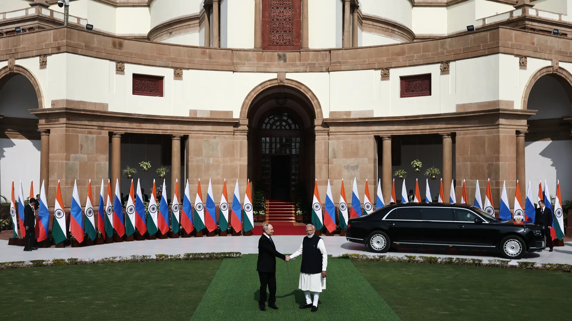 Pre toga za Putina je priređen svečani doček ispred predsedničke palate, uz počasnu stražu i intoniranje himni Rusije i Indije. Ruskog lidera su dočekali predsednik Indije Draupadi Murmu i Modi. Time je označen početak formalnog dela Putinove dvodnevne posete.