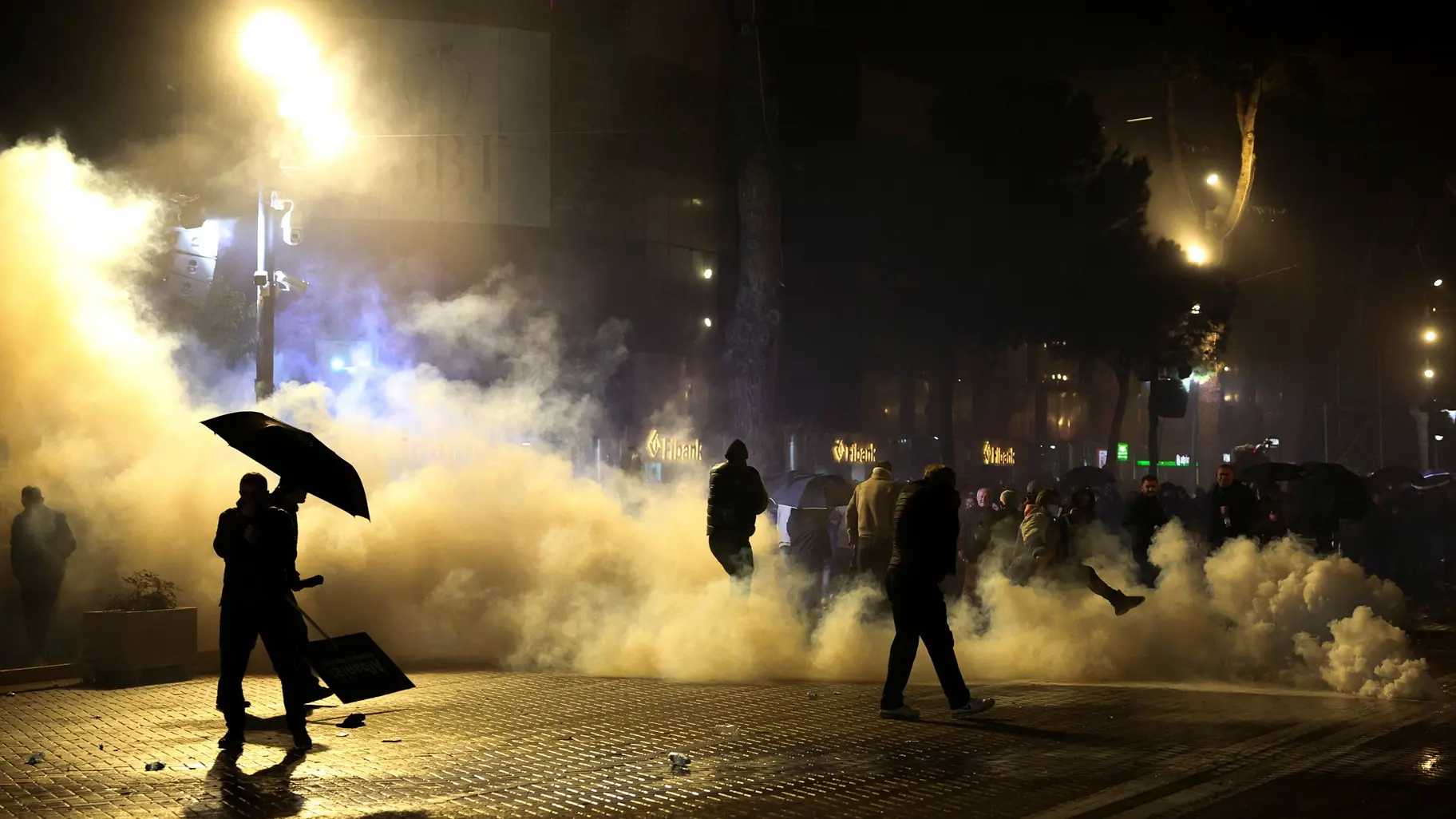 Demonstranti su se zatim sukobili sa policijom ispred zgrade Parlamenta, pokušavajući da probiju kordon i gađajući policajce kamenjem, nakon čega je policija upotrebila suzavac.