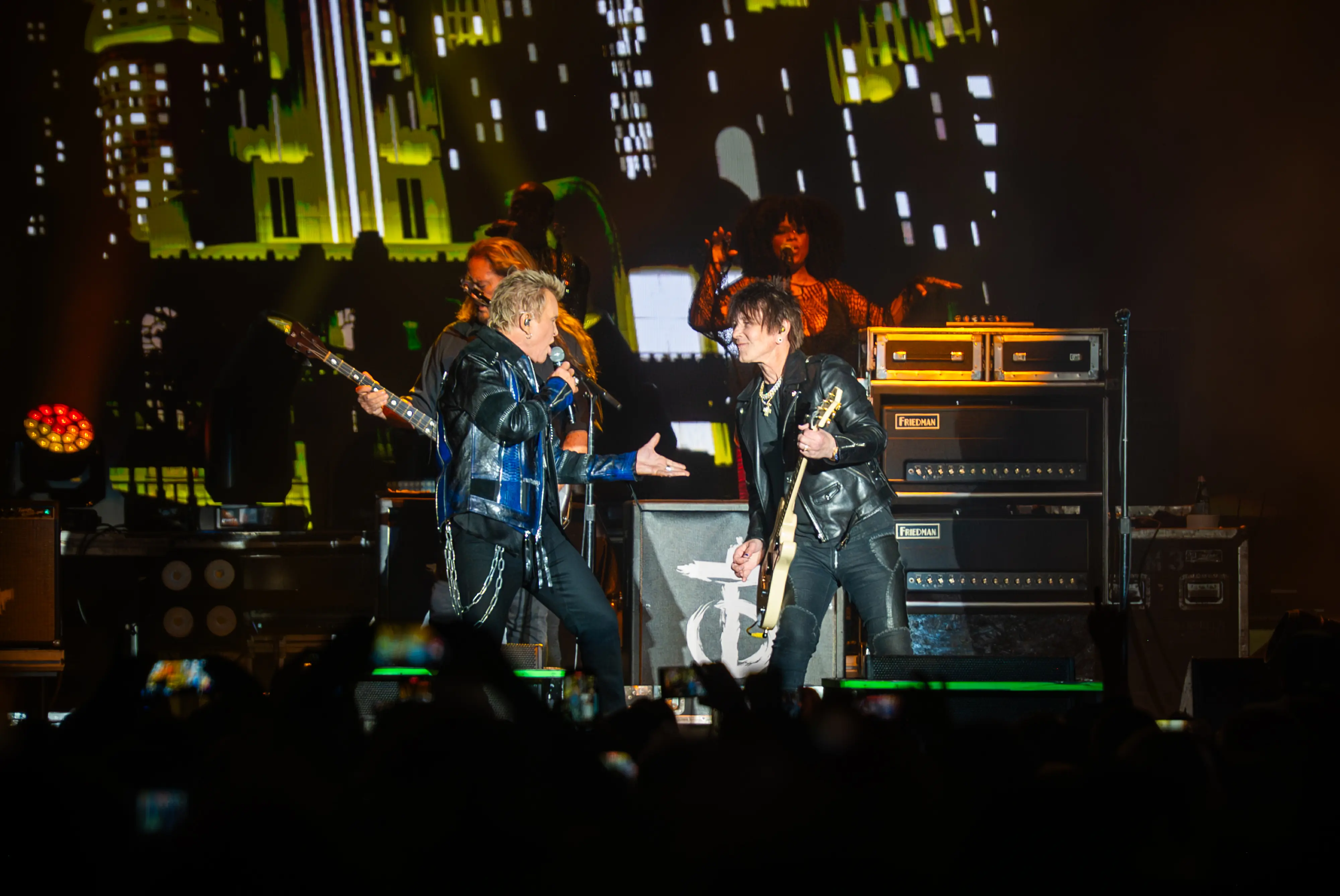 Pravi audio-vizuelni spektakl donele su još dve nove, "77" i "Too Much Fun", te klasici Eyes Without a Face", "Mony, Mony", "Blue Highway"... Svoje majstorstvo je, kao i uvek, pokazao i virtuoz na gitari Stiv Stivens, pre svega svirajući akustičnu na španski način, a nije izostala ni čuvena "Top Gun" tema. Bili je bio raspoložen i za priče koje su upotpunile doživljaj. Otkrio je, između ostalog, da je "Rebel Yell", završna u zvaničnom delu koncerta, nastala uz druženje sa Mikom Džegerom i Kitom Ričardsom i - mnogo viskija.