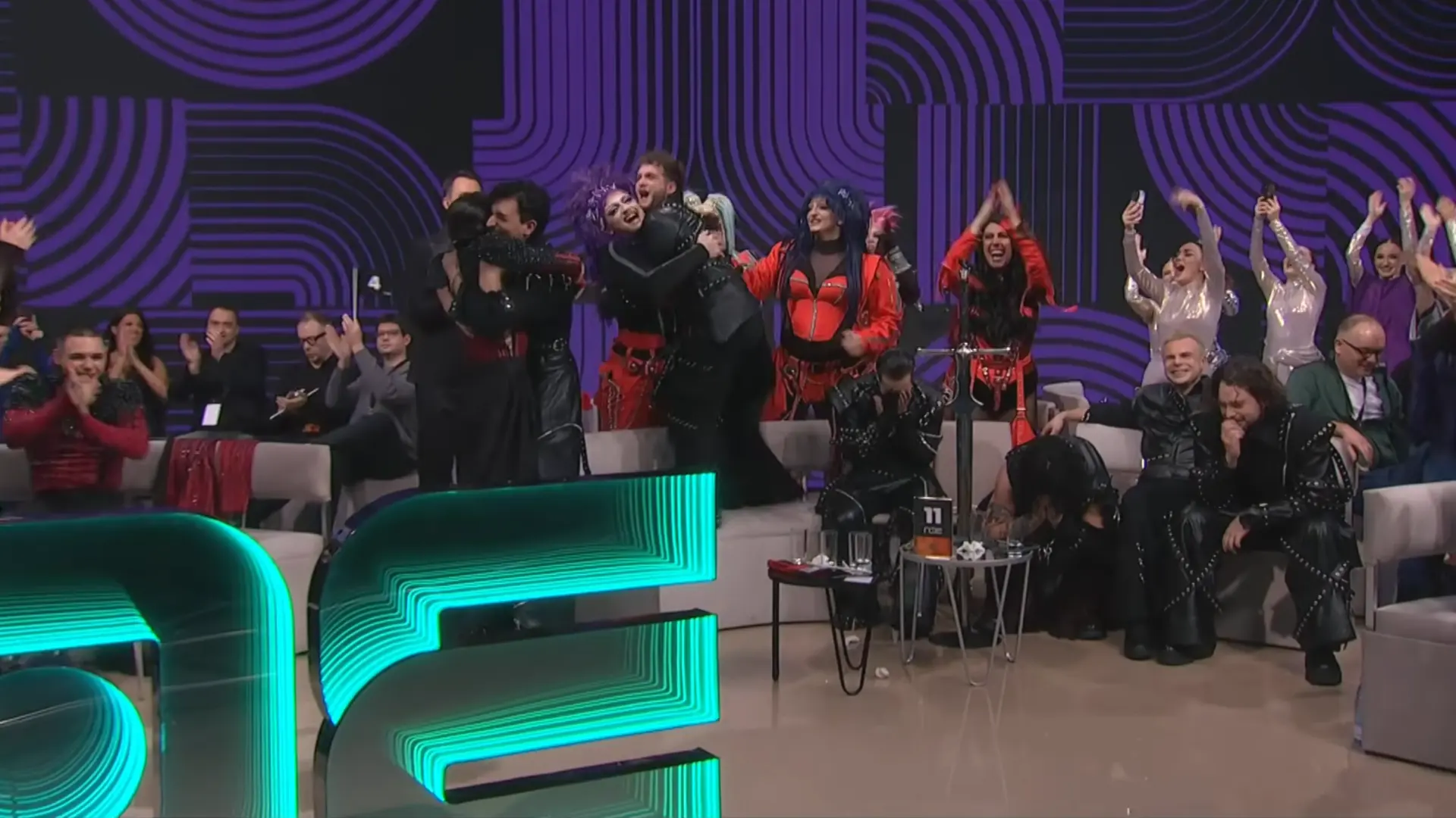 Foto: RTS printscreenZavršeno je veliko finale "Pesme za Evroviziju 2026" u kom se predstavilo četrnaest kompozicija, a zbirom glasova stručnog žirija i publike, u odnosu 50 - 50, pobedu je odnela grupa Lavina sa kompozicijom "Kraj mene".